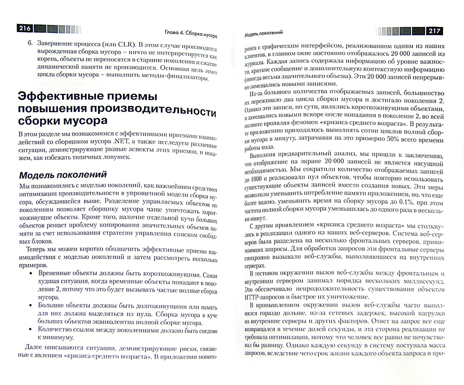 Ни разу не легкое чтениеОчень сложная тема, очень высокая плотность материала, очень много полезной информации, к сожалению, тяжеловесное изложение. Только легко и просто в теме оптимизации никогда и ничего не бывает, а реальной удобочитаемой замены просто нет. Книга однозначно должна быть в коротком списке у любого, кто всерьез решает проблемы оптимизации на .NET.
