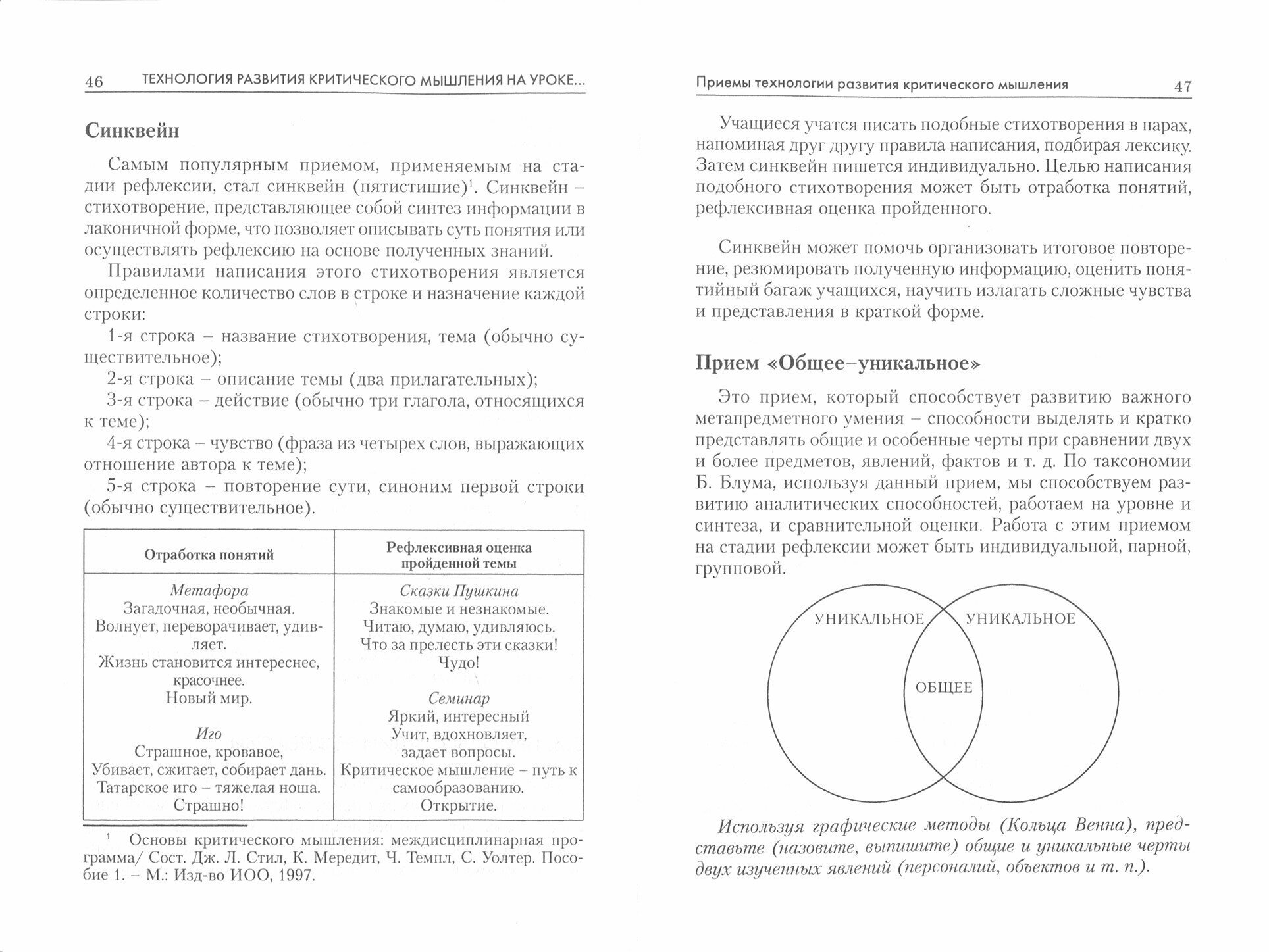«Приёмы технологии развития критического мышления через чтение и письмо при создании книги»