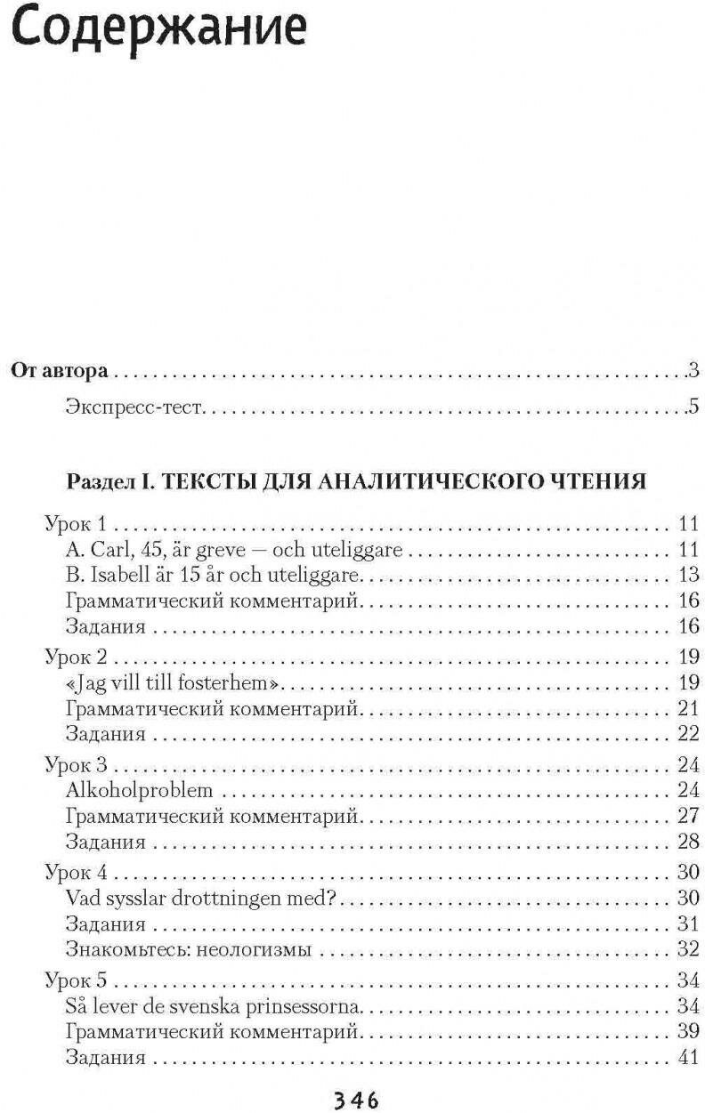 Для изучающих шведский язык со средним и продвинутым уровнем издано очень мало пособий, эта книга может отчасти заполнить этот пробел. По ней можно заниматься самостоятельно, помогает аудио и ключи к упражнениям. Также может быть полезна для преподавателей, тексты хорошо подходят для обсуждения в группе. Кроме того, здесь рассматриваются уже довольно сложные грамматические структуры, на которые упражнения никогда не будут лишними .