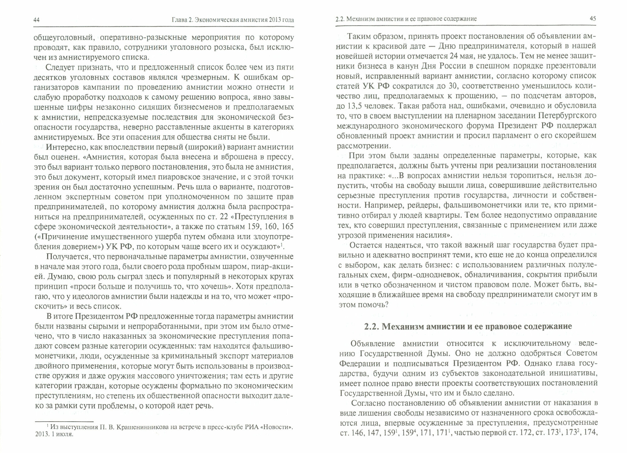 В книге рассматриваются исторические, теоретические и правовые аспекты проведения амнистий в нашей стране, различие между экономической и общеуголовной амнистией, анализируется и комментируется Постановление Государственной Думы от 2 июля 2013 г. "Об объявлении амнистии".