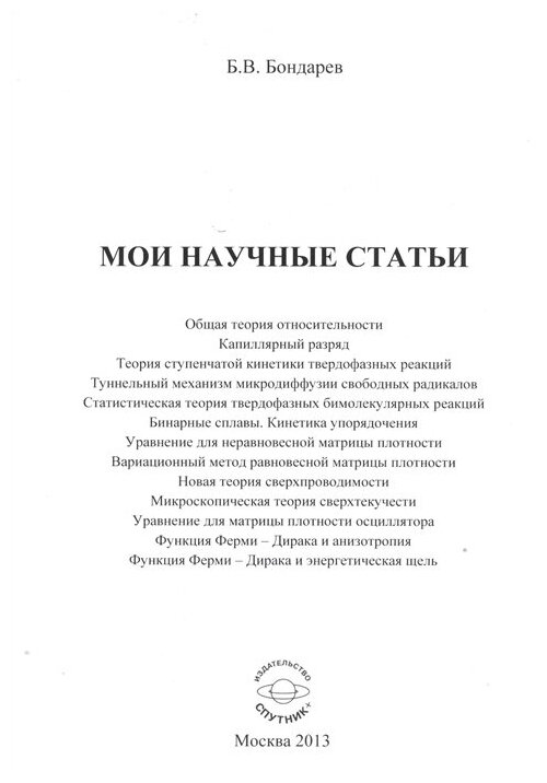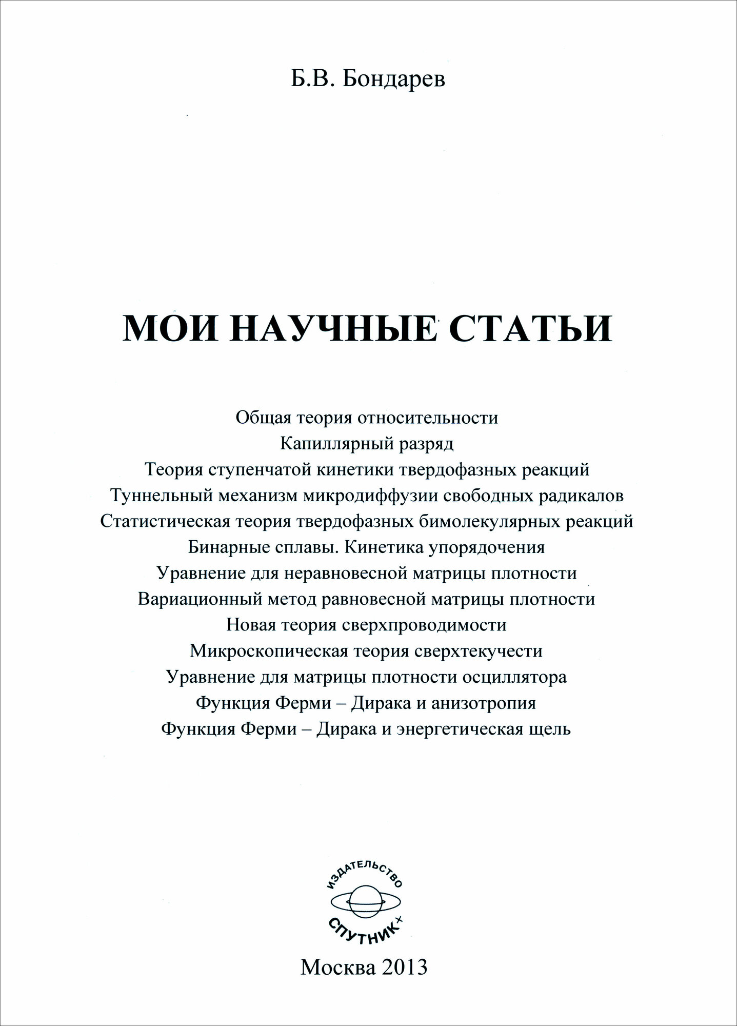 Книга: Мои научные статьи (Борис Владимирович Бондарев); Спутник+, 2013