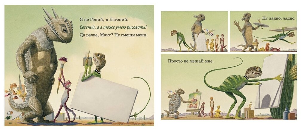 Евгений - состоявшийся, известный художник. А еще он жабовидная игуана. Его юный друг Макс - тоже игуана, только ошейниковая. И нате вам - тоже возомнил себя художником! Но куда новичку до гения!