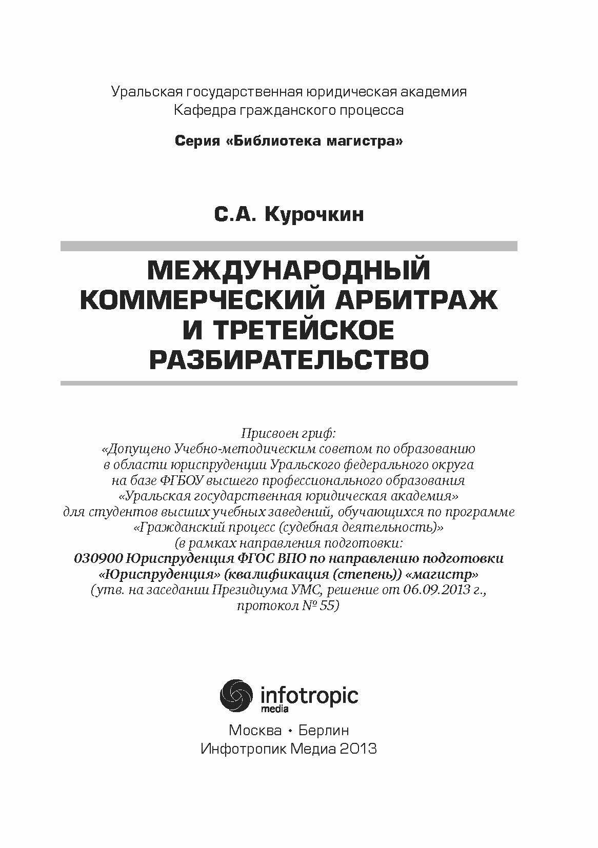 Международное коммерческое арбитражное третейское разбирательство (Сергей Курочкин); Инфотропик Медиа, 2013