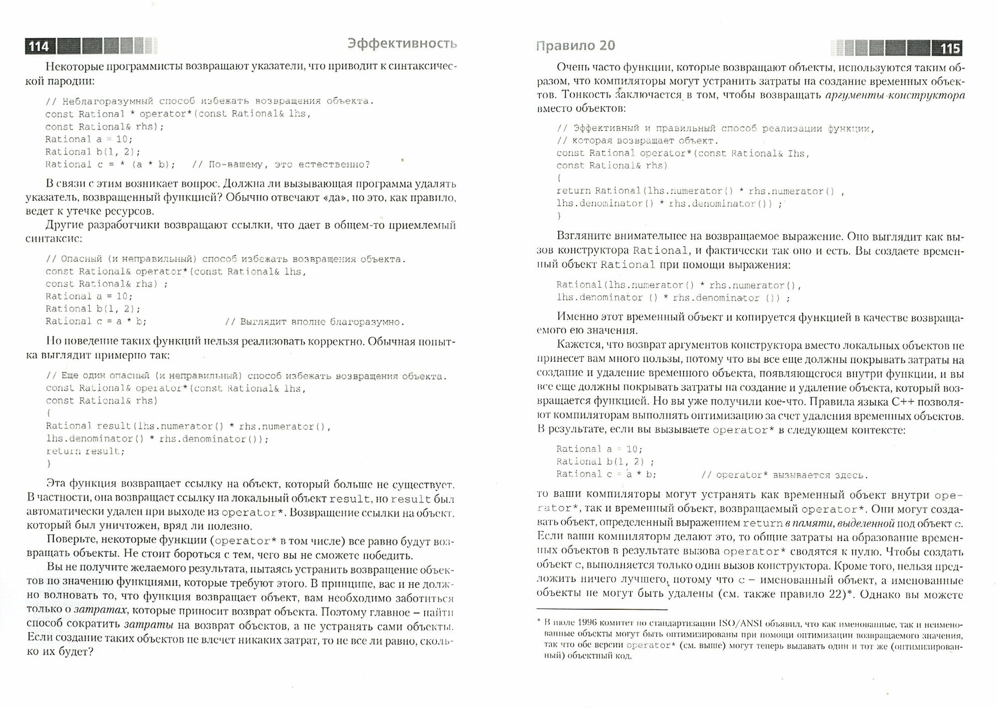 Настоящая книга описывает приемы, которые позволяют значительно повысить производительность программ, выбрав оптимальное соотношение затрат времени/памяти па различные операции. Здесь вы найдете примеры обработки исключений и анализ их влияния на структуру и поведение классов и функций С++, а также варианты практического применения новых возможностей языка, таких как тип bool, ключевые слова mutablе и explicit, пространства имен, шаблоны функций членов, стандартная библиотека шаблонов и многое другое.