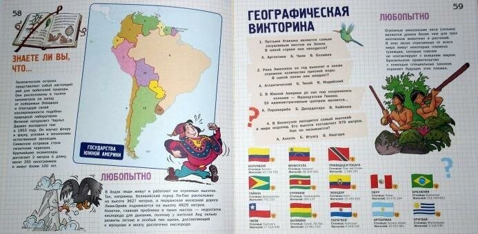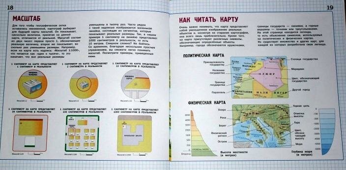 Приятный атлас, никаких ошибок пока не нашли. Ребенок с удовольствием отвечает на вопросы викторины, ну и, конечно же, уже изрисовал некоторые страницы, но не беда. Примерно такой же был в моем детстве, желтенький, с мальчиком и девочкой. Хорошо объяснено про масштаб и ориентирование с помощью компаса: ребенок стал перемещаться по квартире только с айфоновским компасом.)