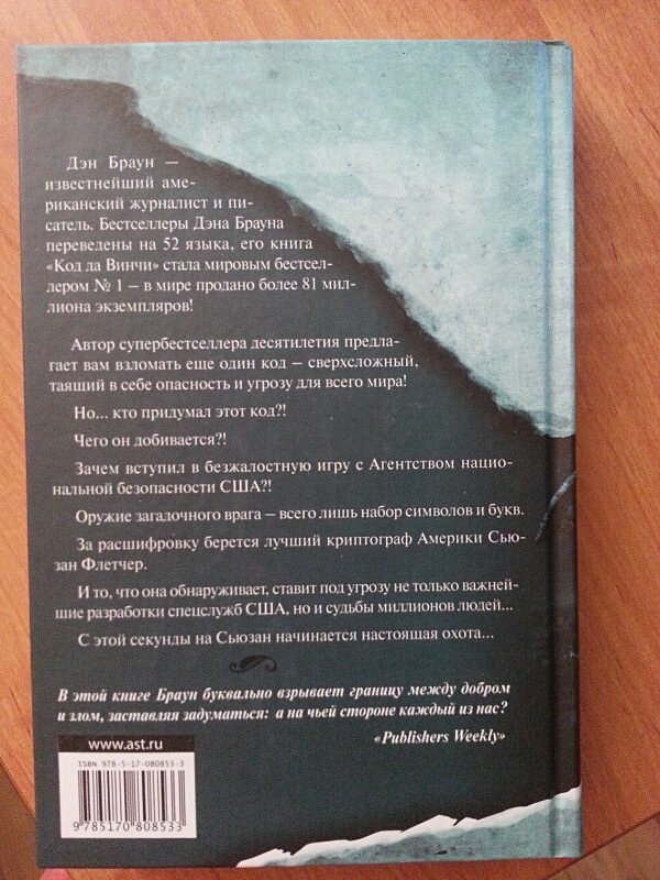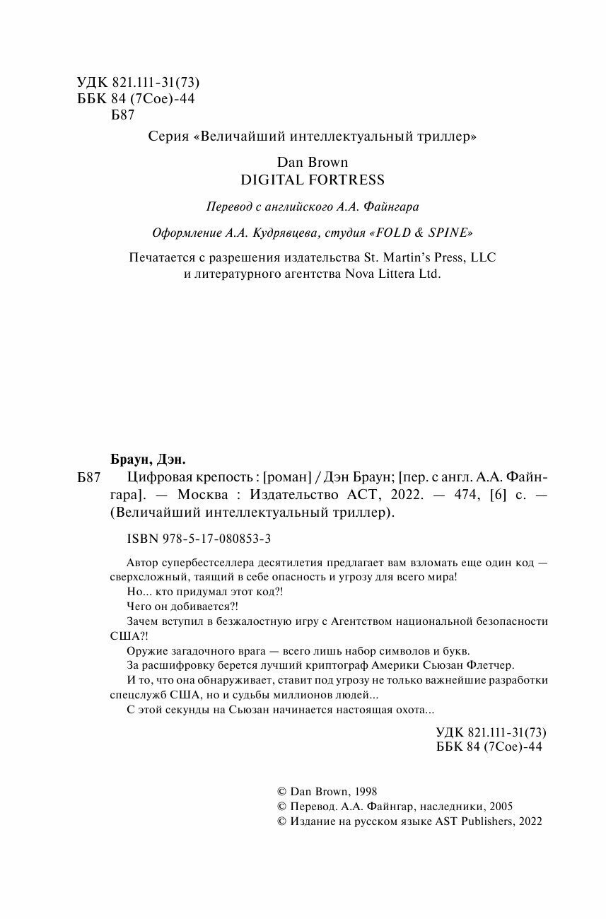 Автор супербестселлера десятилетия предлагает вам взломать еще один код - сверхсложный, таящий в себе опасность и угрозу для всего мира!