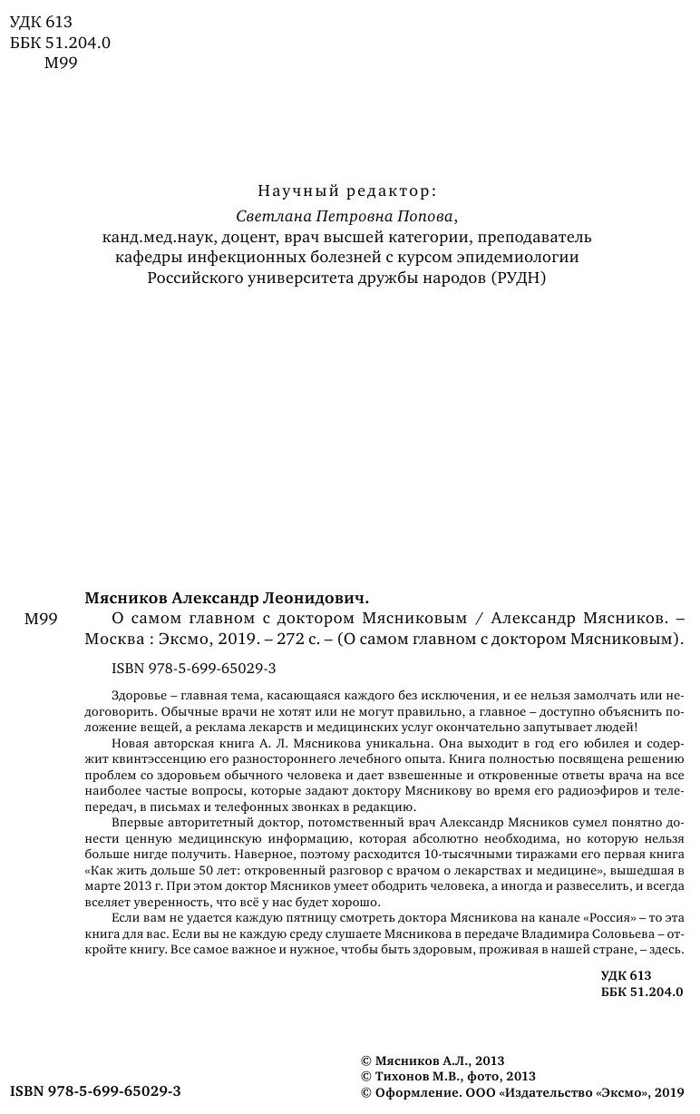 О самом главном с доктором Мясниковым (Александр Леонидович Мясников); Эксмо, 2019