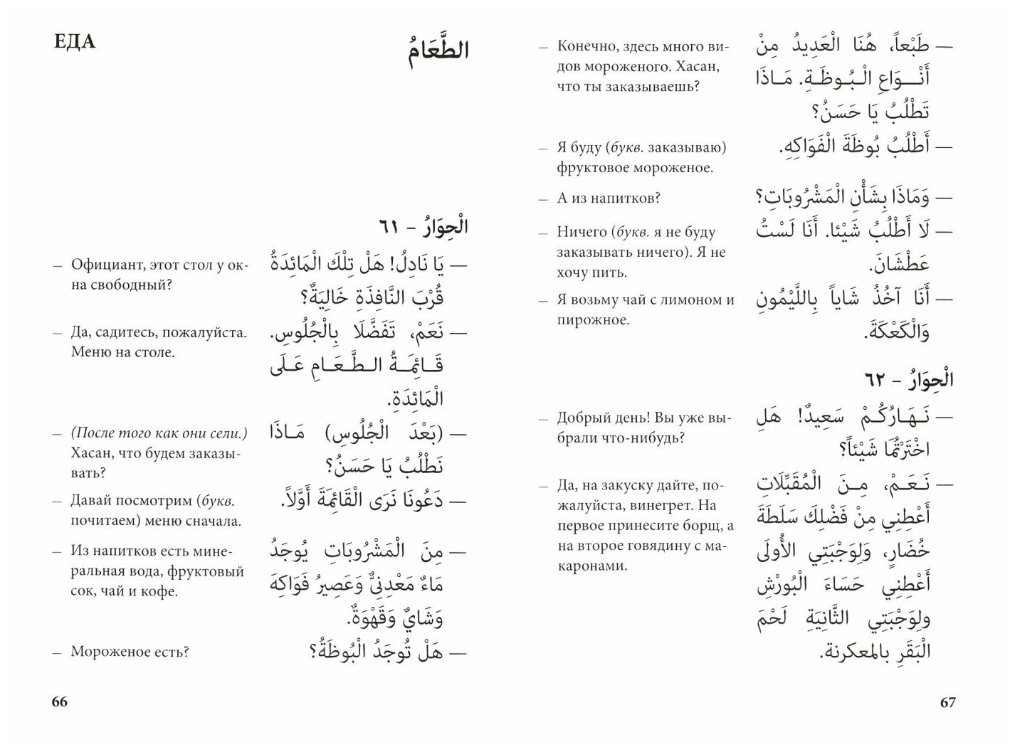 Замечательная книга, чтобы начать учить такой сложный язык, как арабский, где нет гласных, а в обычных книгах полностью отсутствуют огласовки. В книге даны те самые жизненно важные европейцам огласовки, поэтому прочитать все диалоги не составит труда. Плюс, предложения составлены по ситуативному признаку - а значит, вы уже априори будете владеть словарем для той или иной ситуации в жизни.