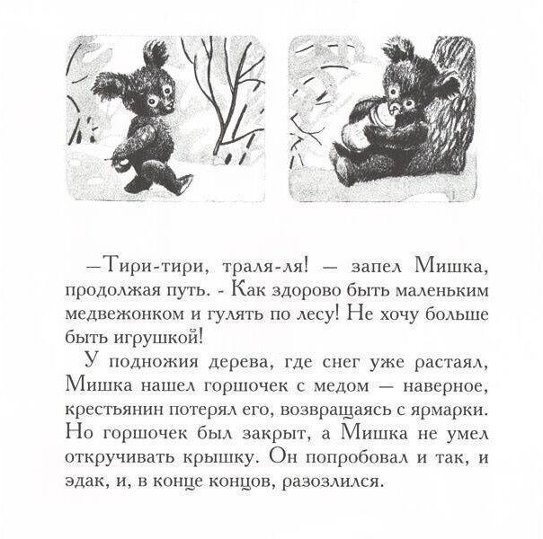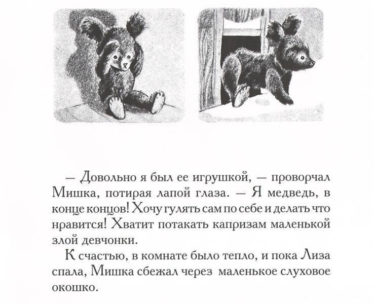 Дочке книга понравилась, просит перечитывать. Особенно ее волнует начало, что девочка, хозяйка Мишки, с ним плохо обращалась и кидала :)