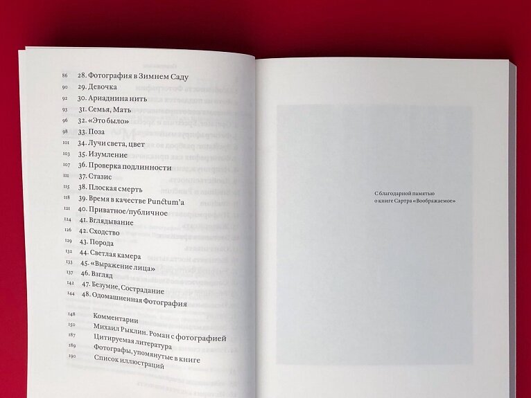 "Camera lucida. Комментарий к фотографии" (1980) Ролана Барта - одно из первых фундаментальных исследований природы фотографии и одновременно оммаж покойной матери автора. Интерес к случайно попавшей в руки фотографии 1870 г. вызвал у Барта желание узнать, благодаря какому существенному признаку фотография выделяется из всей совокупности изображений. Задавшись вопросом классификации, систематизации фотографий, философ выстраивает собственную феноменологию, вводя понятия Studium и Punctum. Studium обозначает культурную, языковую и политическую интерпретацию фотографии, Punctum - сугубо личный эмоциональный смысл, позволяющий установить прямую связь с фотоизображением