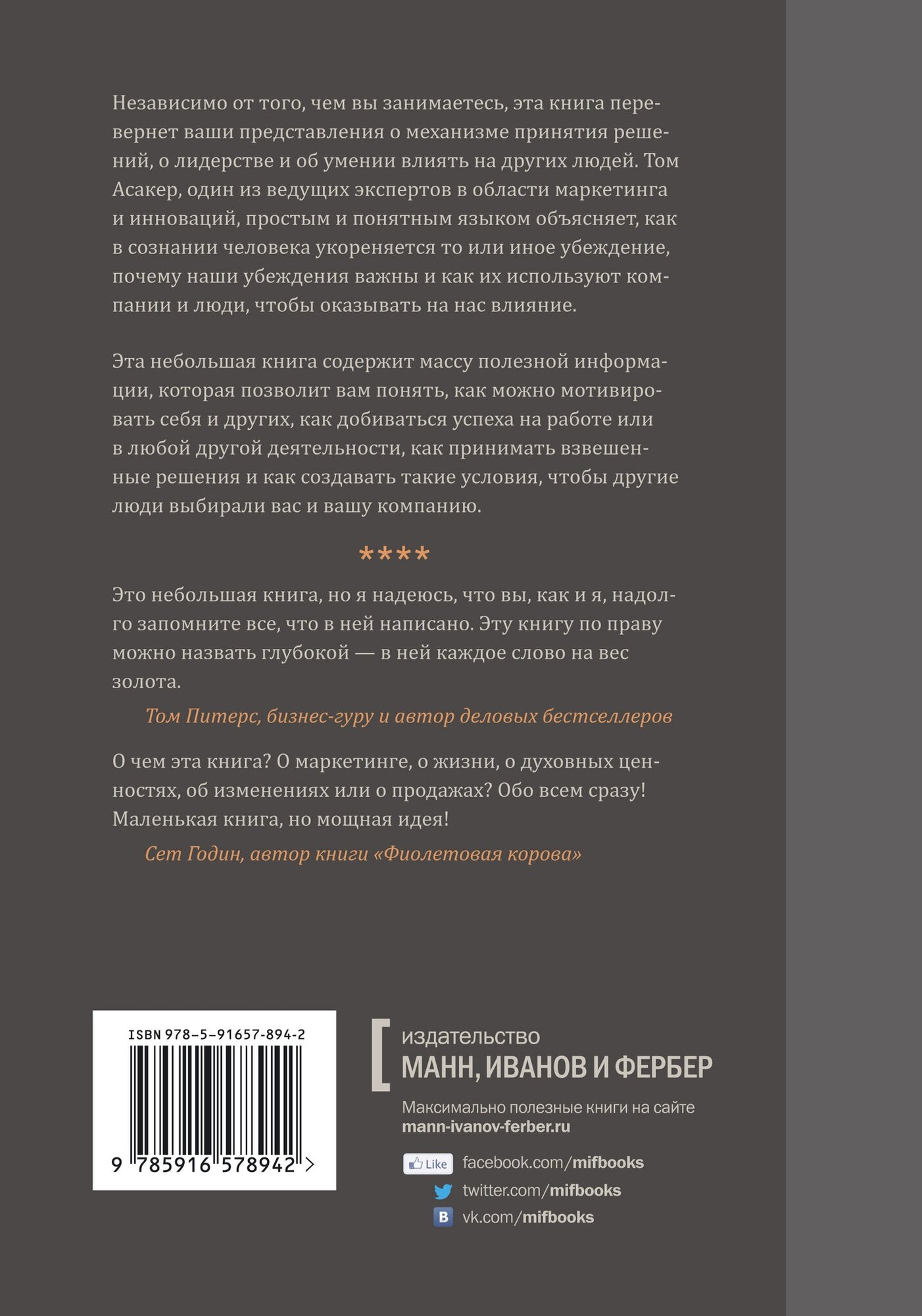 Основа убеждений. Как лучшие в мире маркетологи дизайнеры и лидеры заставляют поверить в свои идеи (Том Асакер); Манн, Иванов и Фербер, 2013