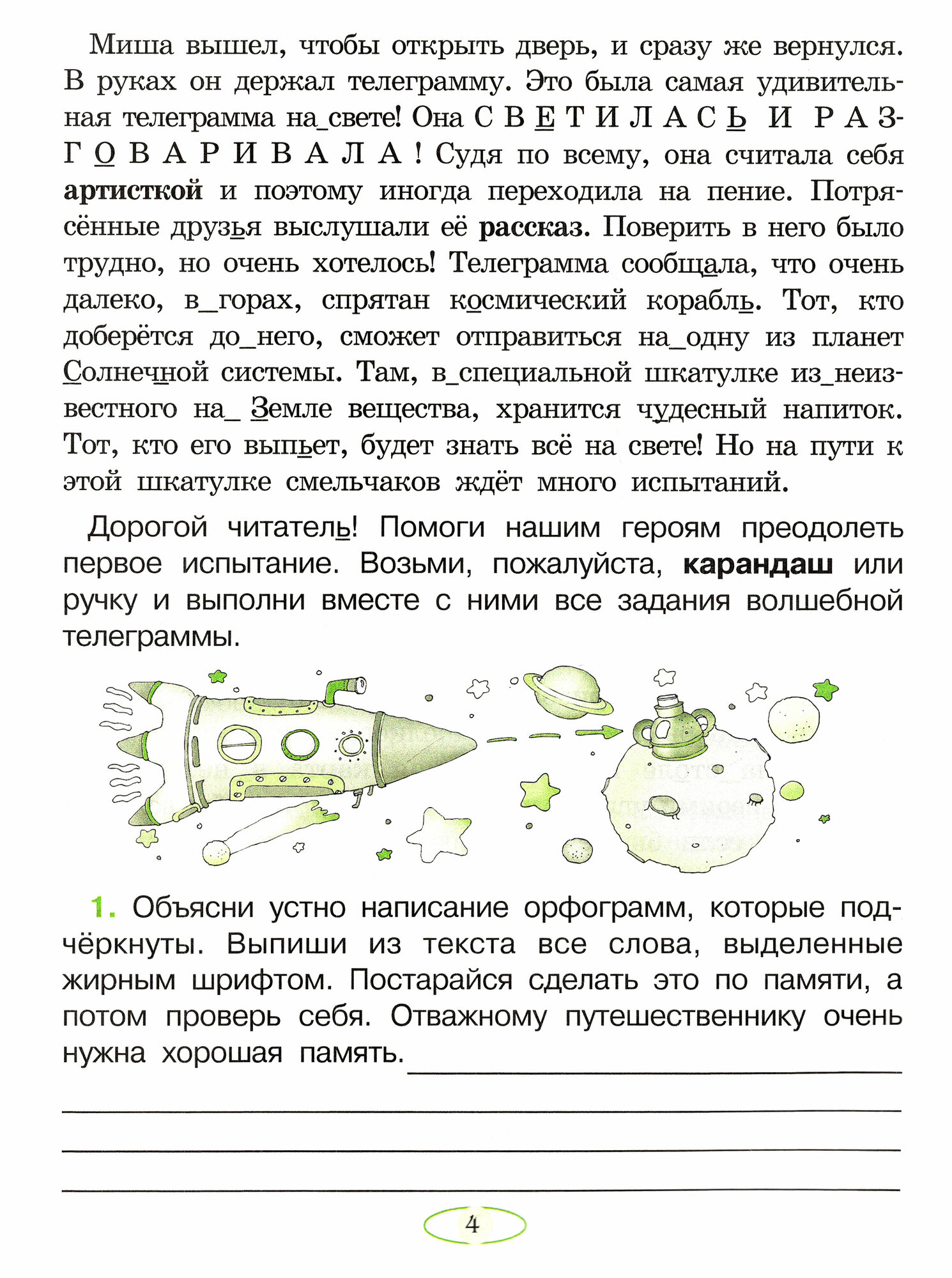 Как и предыдущая тетрадь, данная имеет сюжет, все задания связаны между собой. На этот раз ребята отправляются в путешествие, а тетрадь - бортовой журнал.