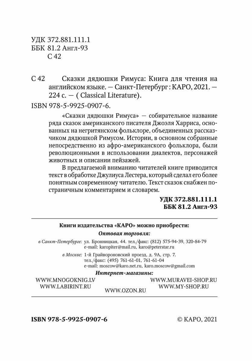 Сервис сравнения цен СкидкаГИД предлагает сравнить цены на товар «Книга: Сказки дядюшки Римуса. Книга для чтения на английском языке (Джоэль Чендлер Харрис); КАРО, 2014»