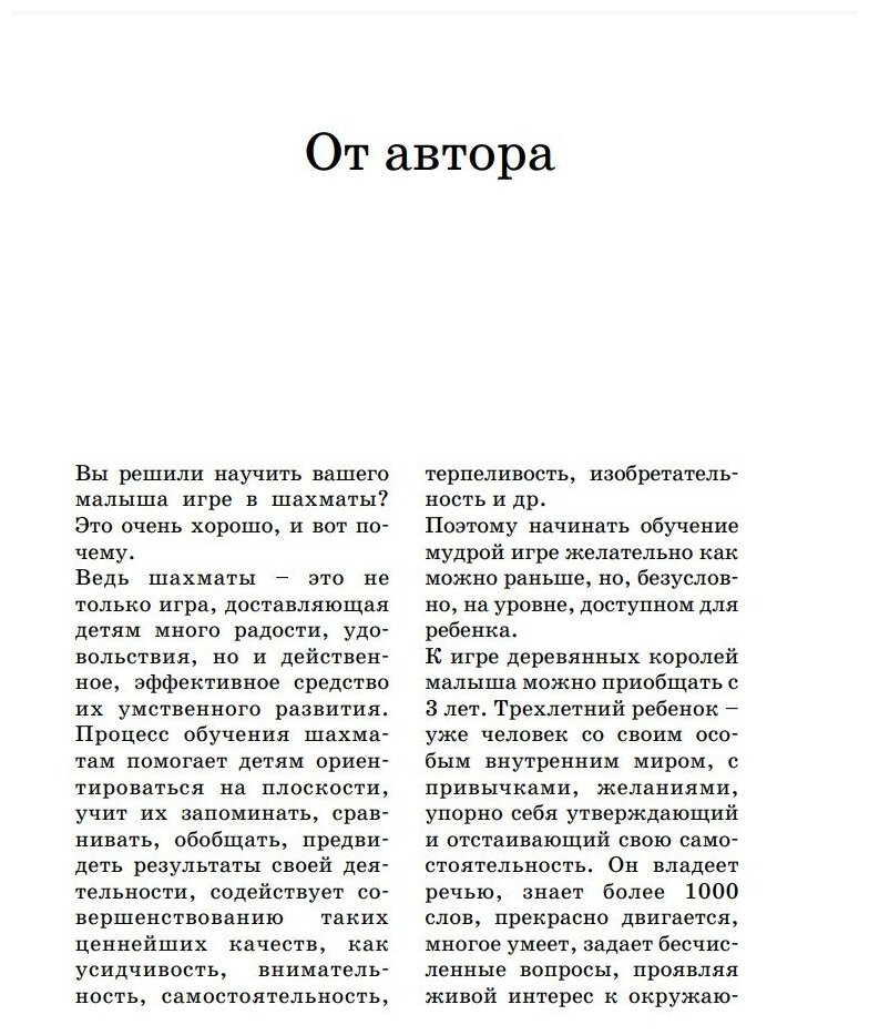 Купила эту книгу для дочки 6,5 лет и учу по ней играть. Сама я в шахматы играть никогда не любила, хотя на примитивном уровне играть умею.