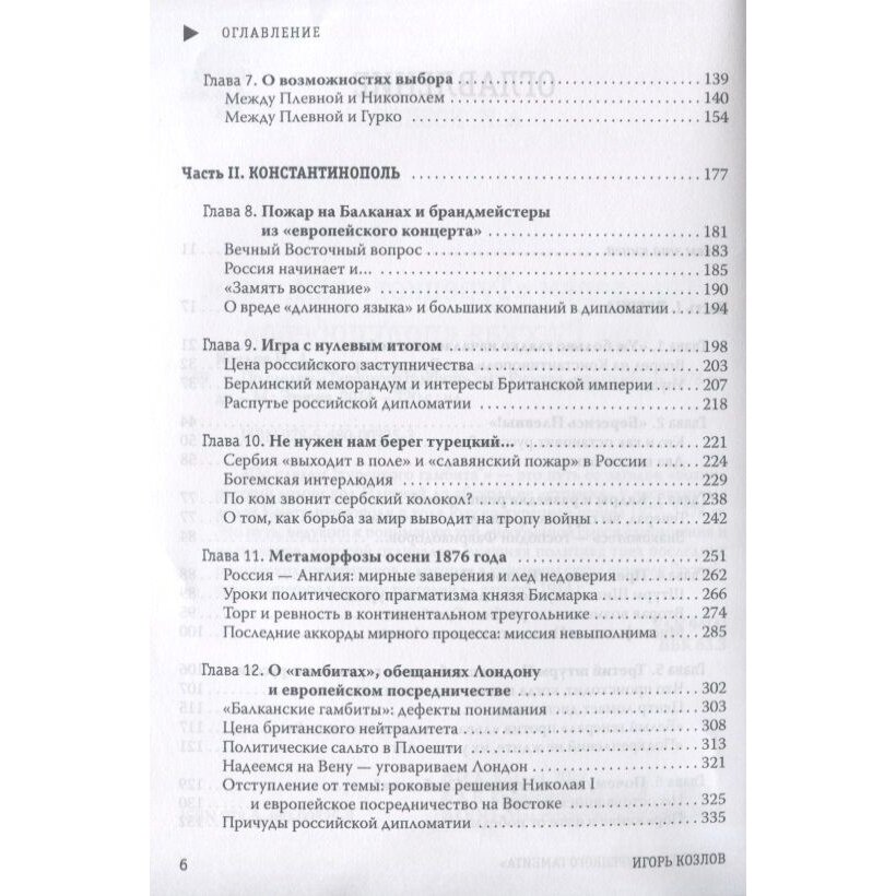 Интересная книга. Как пишет сам автор, он заинтересовался проблемой, почему Россия, выиграв в 1878 г. войну с Турцией, так и не смогла осуществить давно лелеемую идею об установлении контроля над черноморскими проливами и тем самым обеспечить безопасность своих южных рубежей, что сохранило актуальность и до нынешнего времени (ситуация в Черном море после войны с Грузией). Автор подробно анализирует ход событий, причем делает основной упор не на описание боевых действий, а на попытку разобраться в поведении российского руководства в период этого судьбоносного для страны конфликта. И делает вполне закономерный вывод, что главной причиной неудачи была слабость этого самого руководства, которое так и не определилось, что надо стране, а чем можно поступиться во имя главной цели. В отличие от ряда других исследований, автор приходит к выводу, что обида российских деятелей на поведение Австро-Венгрии и Германии в этот период совершенно неправомерна, что главными виновниками всех бед стали правители России, причем ошибки Александра II и его советников были усугублены и продолжены его преемниками - Александром III и Николаем II. В целом получился своеобразный обвинительный памфлет в адрес последних Романовых. Может быть, в чем-то автор и перегибает палку, не всегда понимая сложность сложившейся ситуации, но основные свои выводы они доказывает фактами, что делает его версию вполне убедительной. Напечатана книга неплохо - увеличенный формат, качественная глянцевая мягкая обложка, прочный книжный блок. Есть карты и схемы, примечания. Читается вполне легко. Могут быть высказаны замечания по структуре текста (он выстроен не строго хронологически, есть повторы), но это, впрочем, право автора. Стоит прочитать и приобрести.