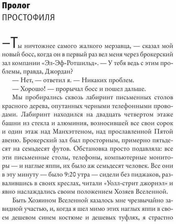 Автор этой книги - знаменитый делец с Уолл-стрит, биржевой брокер-махинатор, основатель одной из крупнейших финансовых "прачечных" конца XX века. Каждая страница его мемуаров так и дышит гламуром 1990-х: самые быстрые тачки, самые длинные яхты, самые роскошные женщины - и на все это проливается непрерывный дождь хрустящих денежных купюр. Жизнь-сказка, фантастический успех, за которым следует столь же головокружительное падение: предательство друзей, тюремный срок за мошенничество, пожизненный запрет на профессию... В общем, настоящее голливудское кино - не даром же великий Мартин Скорсезе снял по этой книге один из самых дорогих фильмов в истории Голливуда, и главную роль в нем исполнил Леонардо ди Каприо...