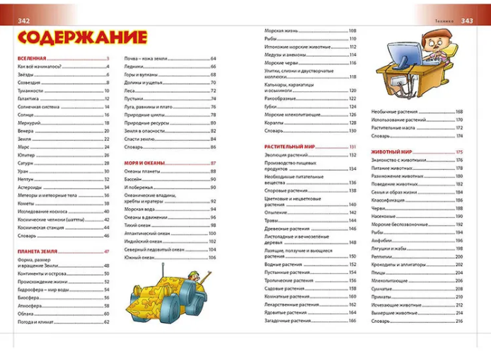 Из этой книги ты узнаешь, кто изобрел первый автомобиль, где живут сумчатые кроты и сколько зубов у акулы. Ты увидишь, какие удивительные динозавры обитали на Земле много миллионов лет назад, какие странные существа живут в океанах в наше время, и узнаешь, почему так важно беречь природу.