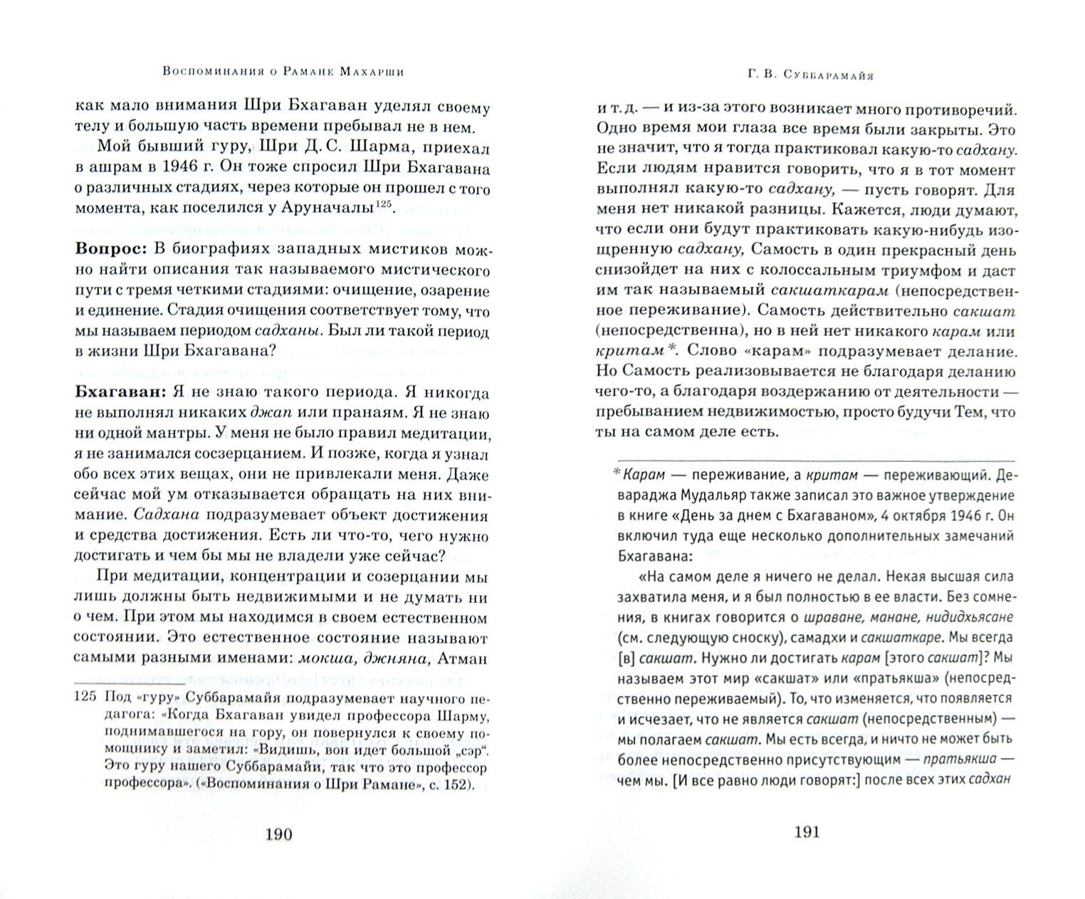 Это далеко не легкое чтиво, но книга написана легким и доступным языком. О ценности быть. Читаешь и все понятно, но не произвольно есть моменты к которым возвращаешься- перечитываешь, обдумываешь. И хотя сам Рамана говорил, "Я в книгах не встретишь", все же иногда нам требуется направление на пути к Истине и эта книга полна подсказок)) Огромная благодарность переводчикам и издательству, за существование данной книги.