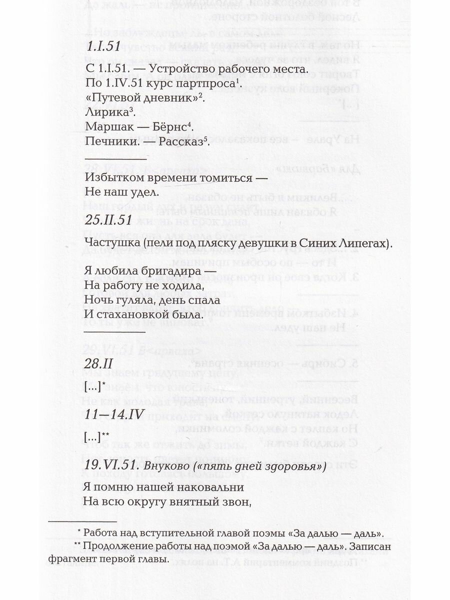 Так вот, дневники 50-х гг. – это прежде всего рабочие тетради, основная масса записей которых связана с работой над стихами – набросками, черновиками, размышлениями и проч. Знаковые события 50-х гг. – смерть Сталина, 20 съезд – либо вообще не освещены (как последний), либо более чем поверхностно. Отставка (первая) с поста главреда «Нового мира» в 1954 г., новое назначение в 1958 г. упоминаются как нечто фоновое. Многое из этой информации, думаю, не вызовет интереса у обычного читателя.