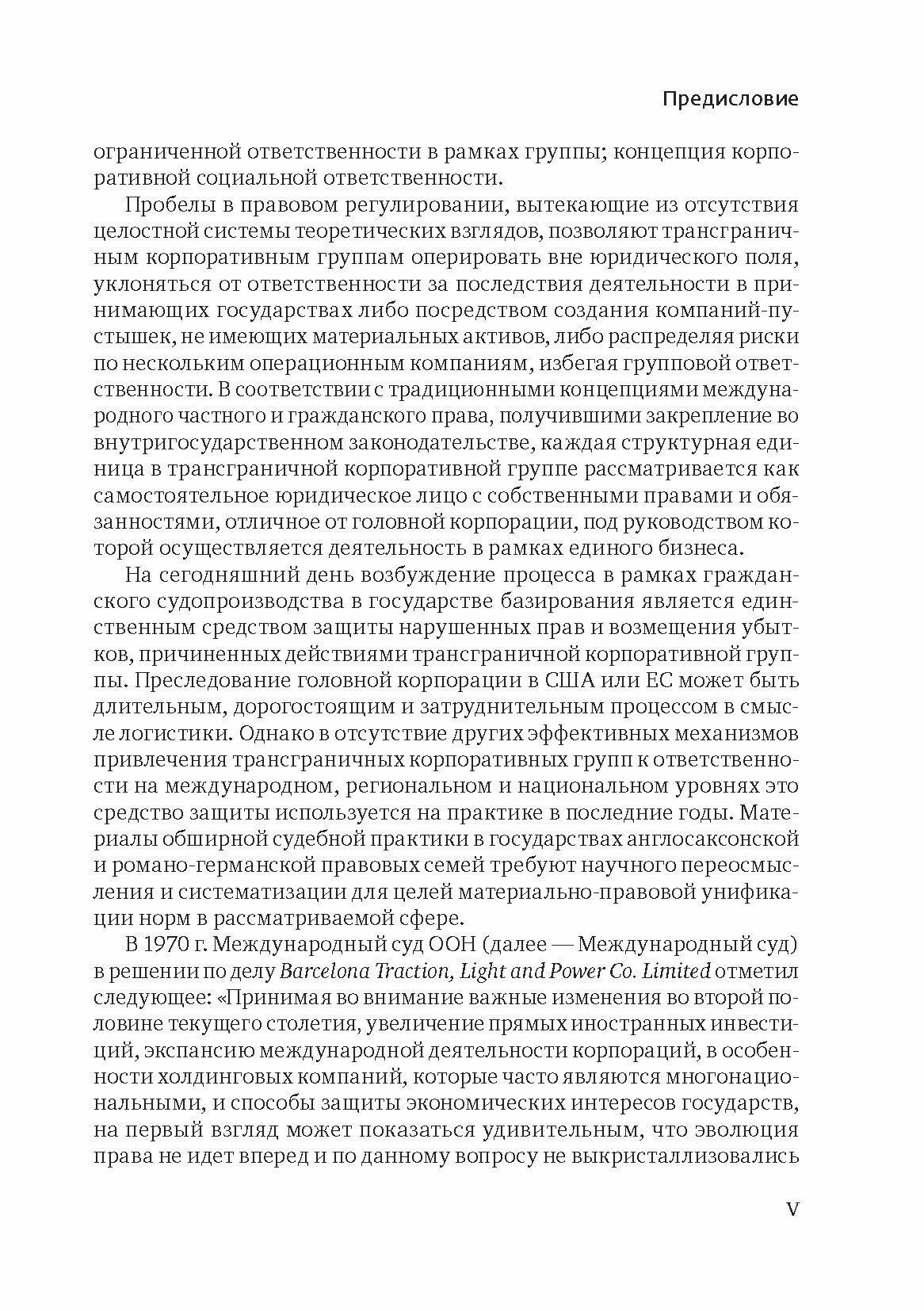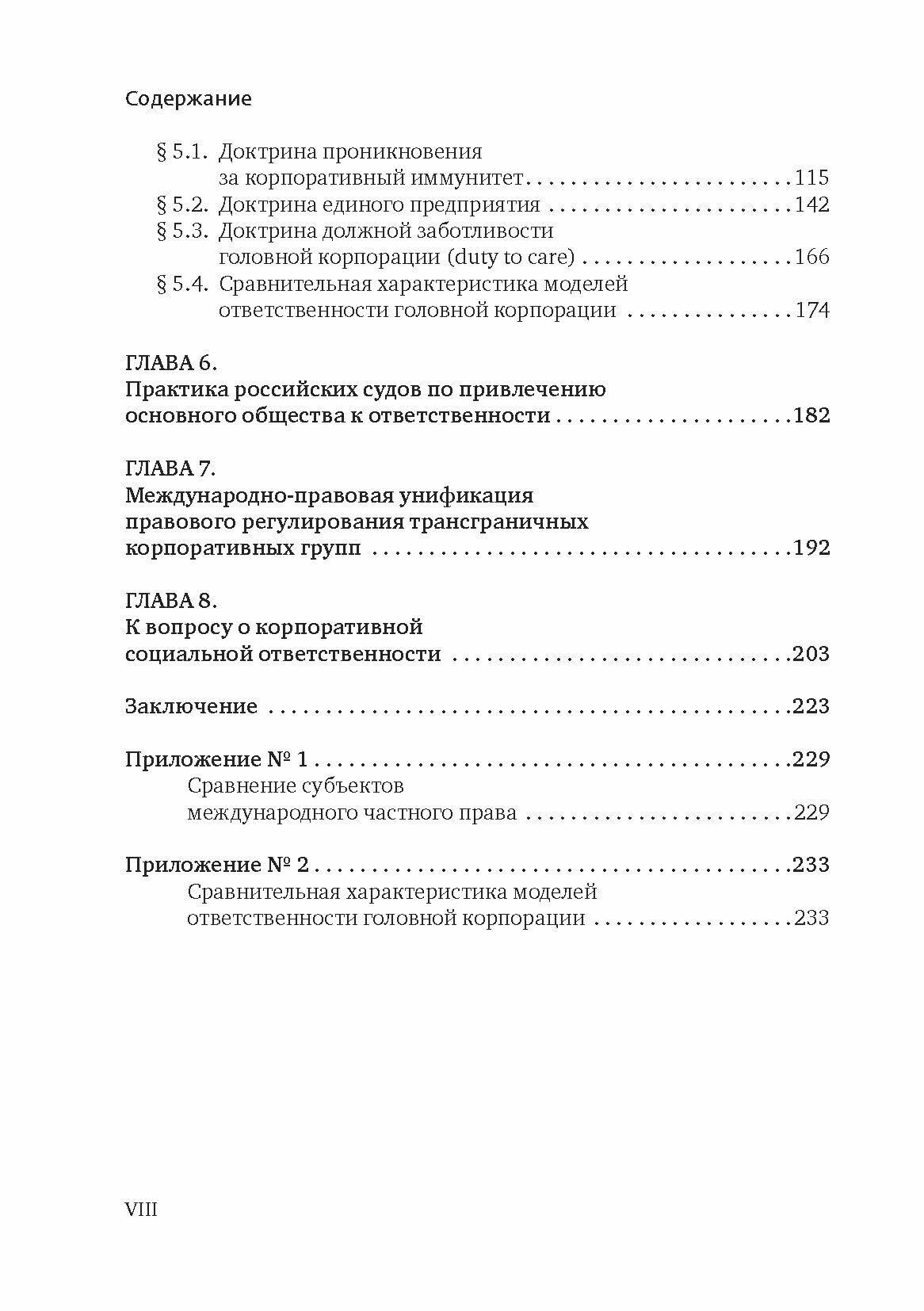 Помимо уже известной доктрины проникновения за корпоративный иммунитет (piercing the corporate veil) в книге также исследуется большой объем нормативно-правовых актов и судебной практики о привлечении трансграничных корпоративных групп к ответственности и по другим основаниям (доктрина единого предприятия и доктрина должной заботливости). Некоторые судебные прецеденты анализируются впервые.