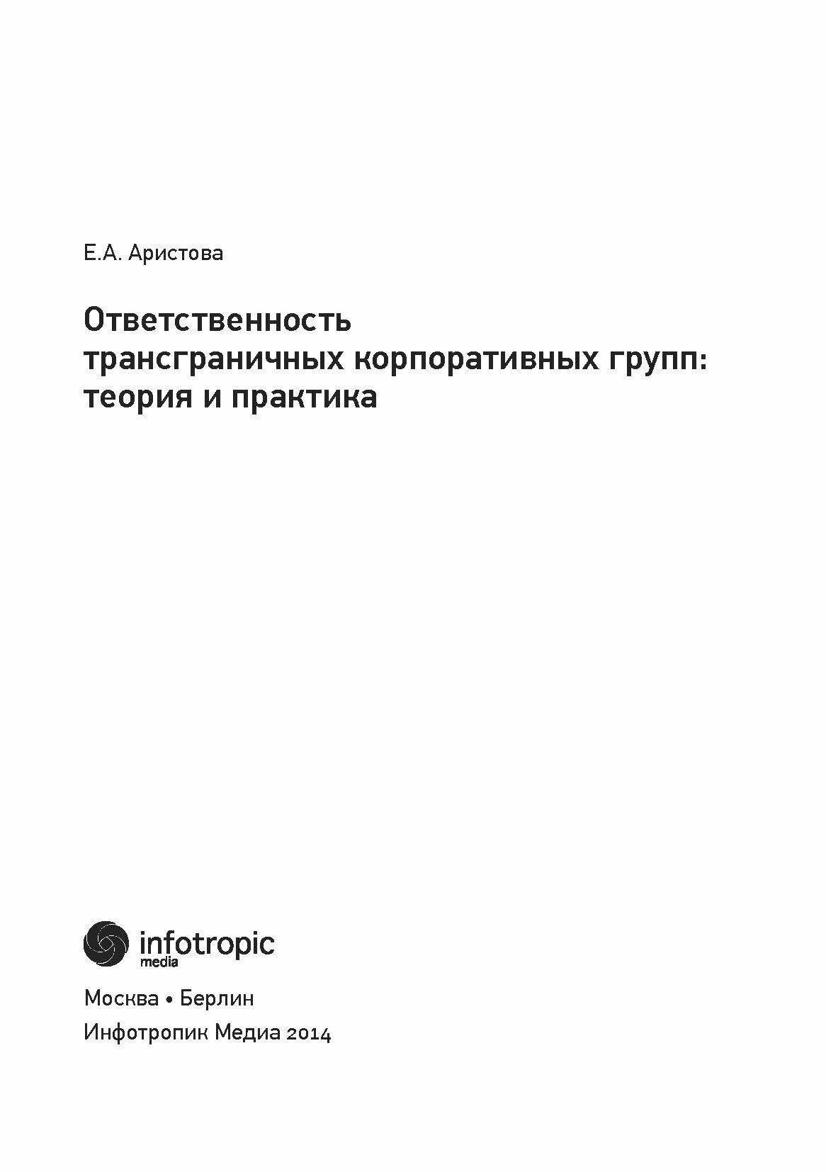 Ответственность трансграничных корпоративных групп. Теория и практика (Аристова Екатерина Анатольевна); Инфотропик, 2014