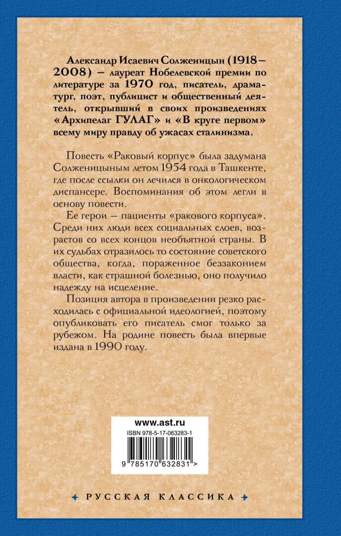 Книга: Раковый корпус (Солженицын Александр Исаевич); ИЗДАТЕЛЬСТВО "АСТ", 2010
