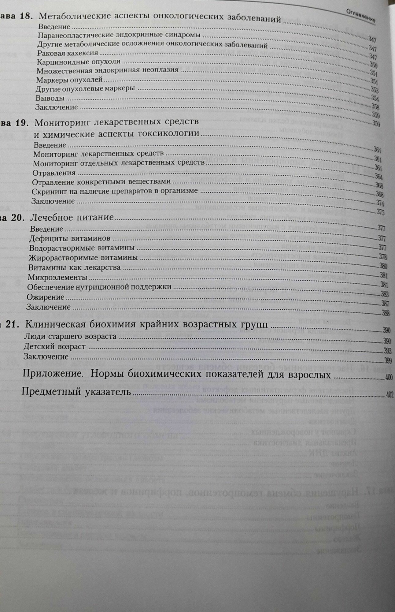 Новое издание на русском языке современного руководства, созданного известными британскими специалистами в области лабораторной диагностики (соответствующее 6-му изданию на языке оригинала), охватывает все основные разделы клинической биохимии: методологию лабораторной диагностики, определение водно-электролитного и кислотно-основного состояния организма, биохимические показатели и значимость для диагностики их изменений при патологии внутренних органов, онкологических заболеваниях, наследственных и приобретенных метаболических нарушениях. В отдельных главах рассмотрены мониторинг лекарственных веществ, методы контроля за эффективностью лечебного питания и особенности лабораторной диагностики у людей старшего возраста и детей. Книга содержит большое количество схем, таблиц и клинических примеров. Для врачей, преподавателей и студентов медицинских учебных заведений.
