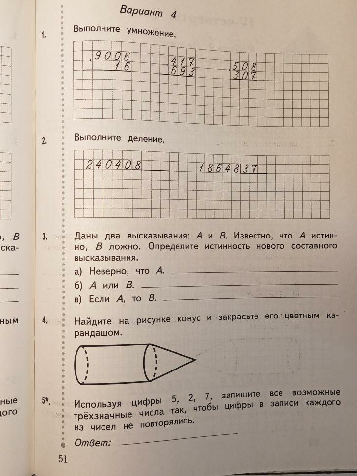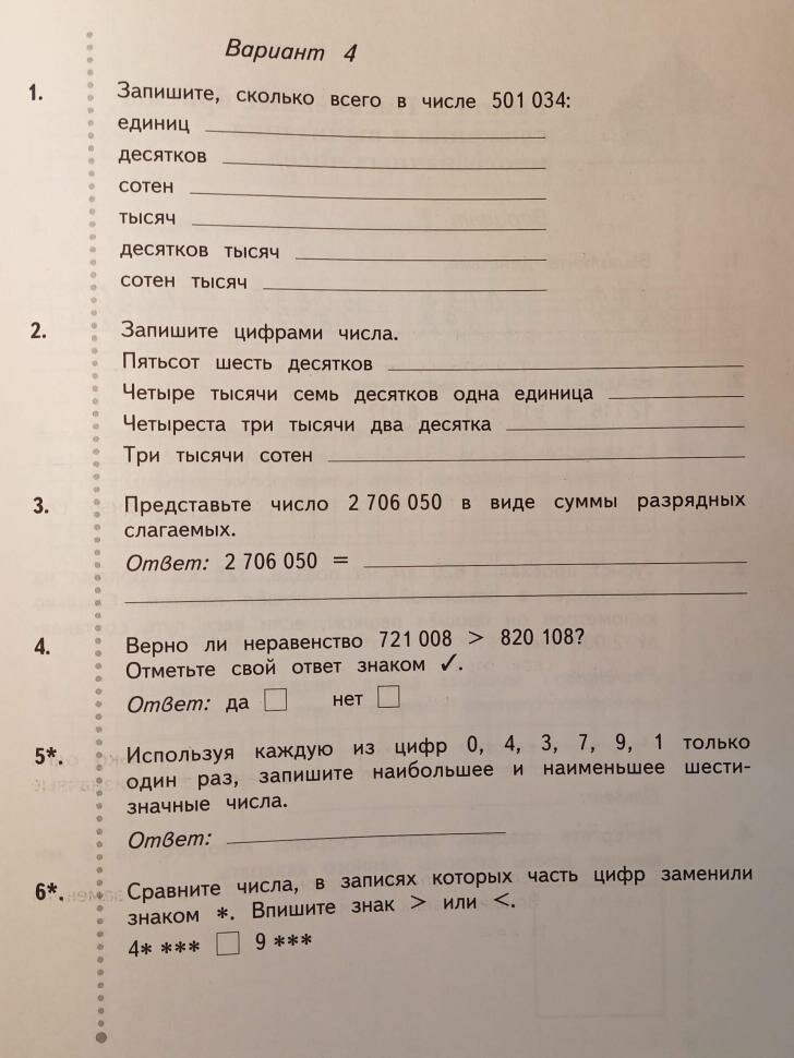 Контрольная работа по математике 4 класс, за первую четверть, без автора