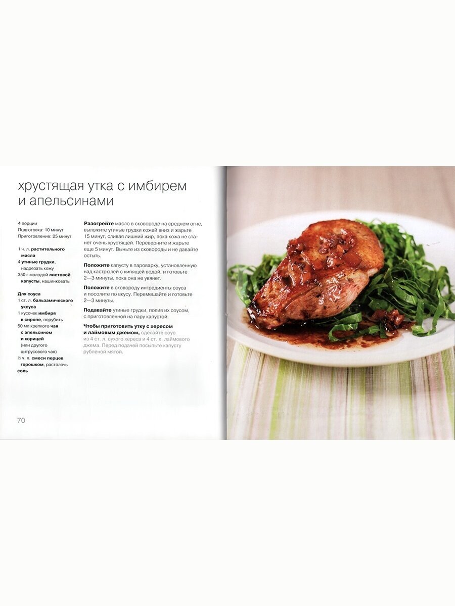 Немного разочарована, книга маленькая и в мягкой обложке. Фотографии красивые, рецепты -этакий микс из современной европейской и паназиатской кухни. Беда только в том, что половину упомянутых там продуктов теперь, в связи с эмбарго, найти невозможно. Но рецепты действительно "быстрые", рассчитанные на приготовление ужина за 30-40 минут, и при этом небанальные.