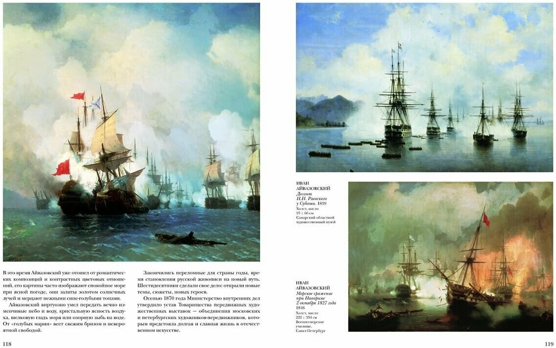 Альбом мне понравился, очень красивый. В него вошли репродукции картин 28 художников. Среди них есть В.Перов, И.Айвазовский, Н.Неврев, П.Верещагин и многие другие. Не о всех представленных здесь художниках я знала, некоторые стали для меня открыты впервые. Текста совсем немного, в основном идет небольшое описание картин. Каждому художнику отведено разное колличество страниц.Например, К.Трутовскому всего два разворота, а И.Айвазовскому 12 страниц. Оформление хорошее,печать четкая. Иллюстрации разного размера,но маленьких нет. Есть иллюстрации на два листа хорошего качества. Подборка художников тоже порадовала.