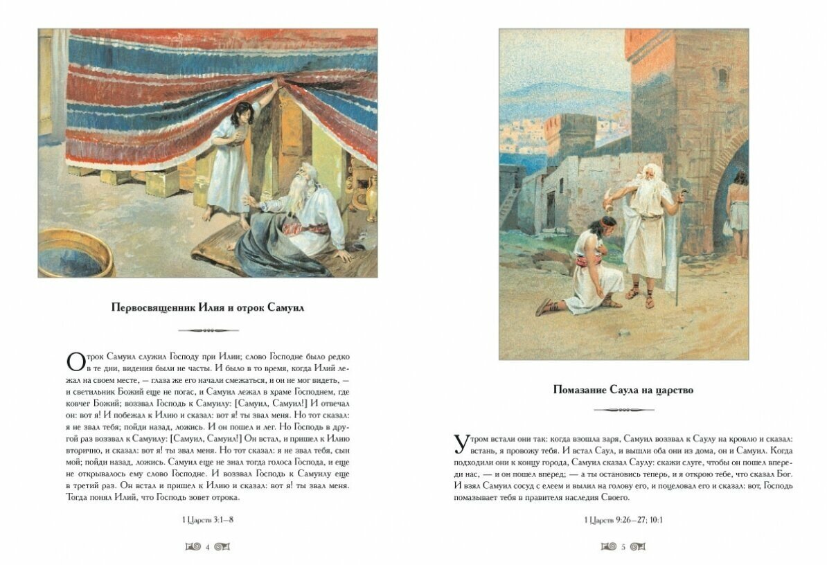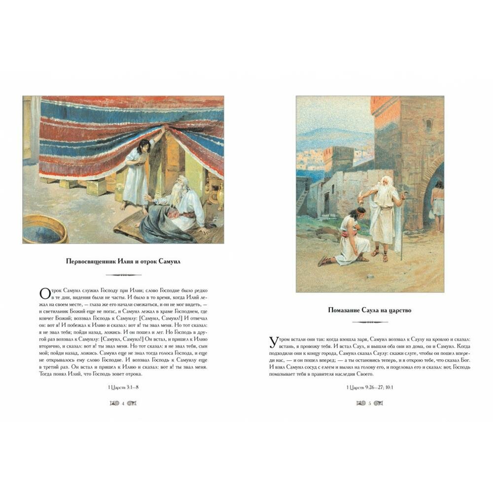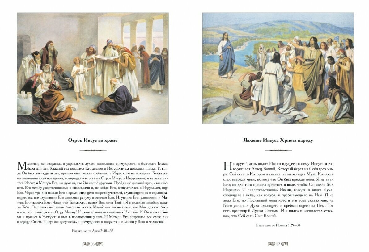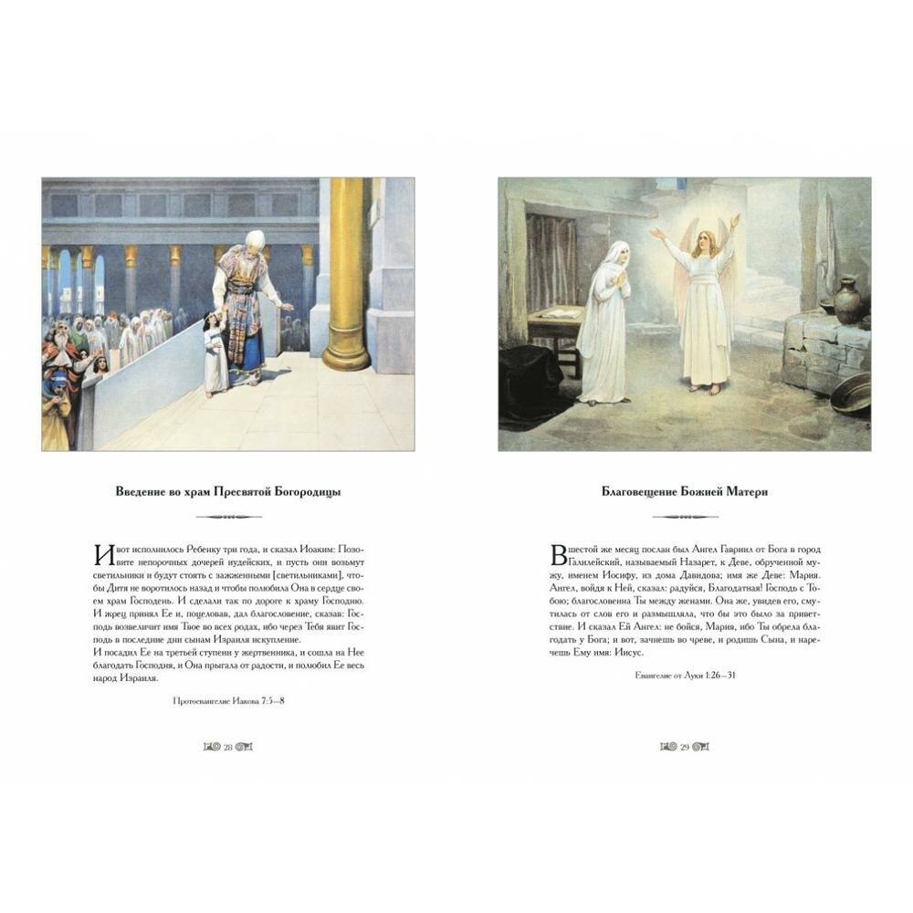 В книгу включены иллюстрации, сделанные известным русским художником К.В. Лебедевым к Новому Завету в конце XIX века. Цветные иллюстрации отражают все основные события, изложенные в Евангелии.