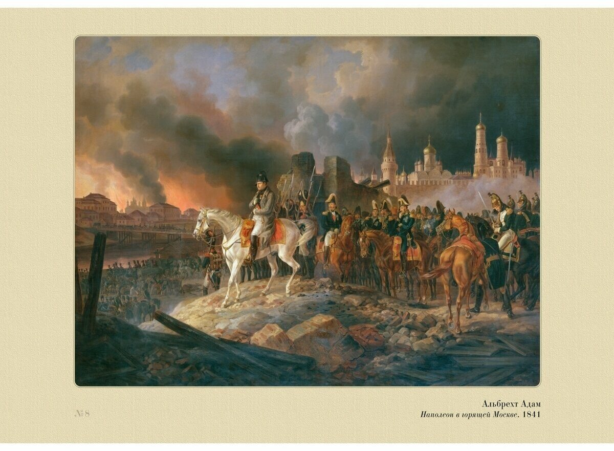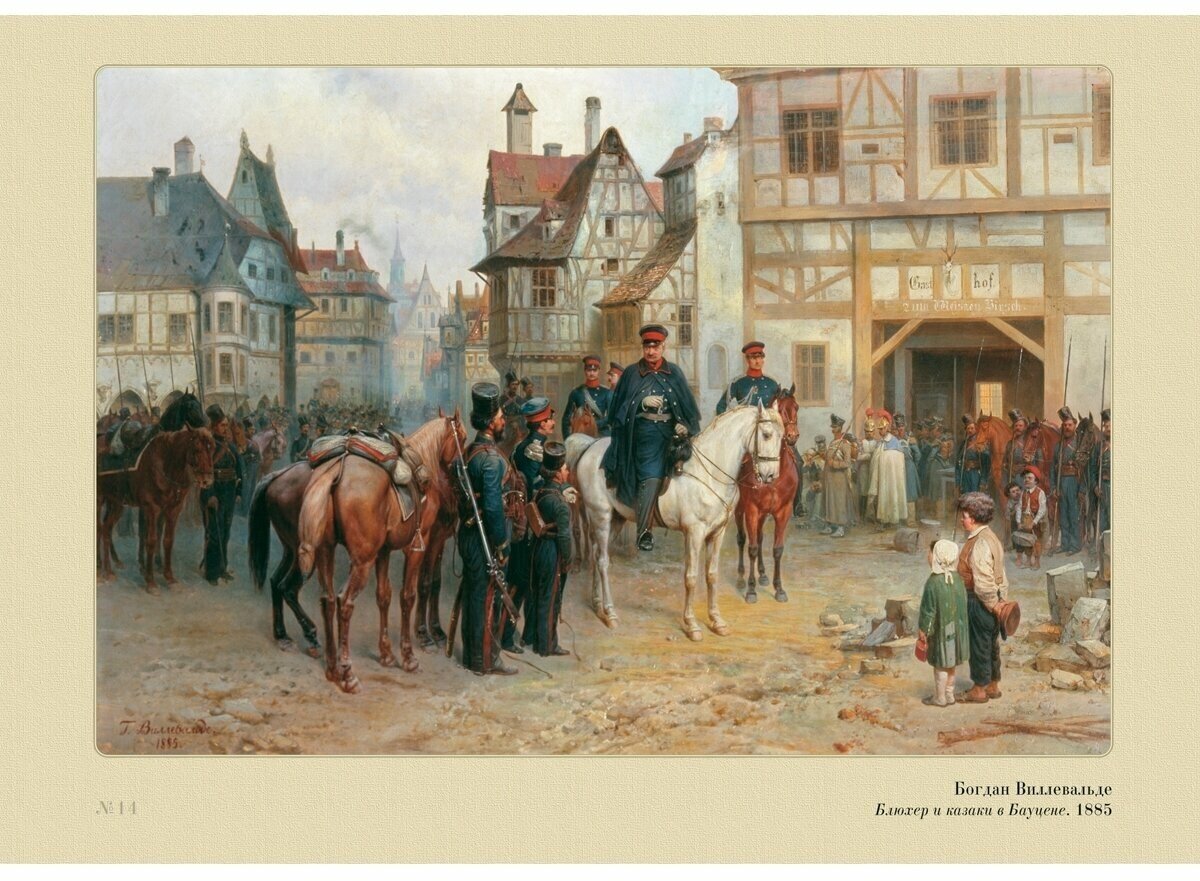 В набор вошли картины русских и зарубежных художников-баталистов, посвященных Отечественной войне 1812 года и Заграничным походам русской армии 1813-1814 годов.