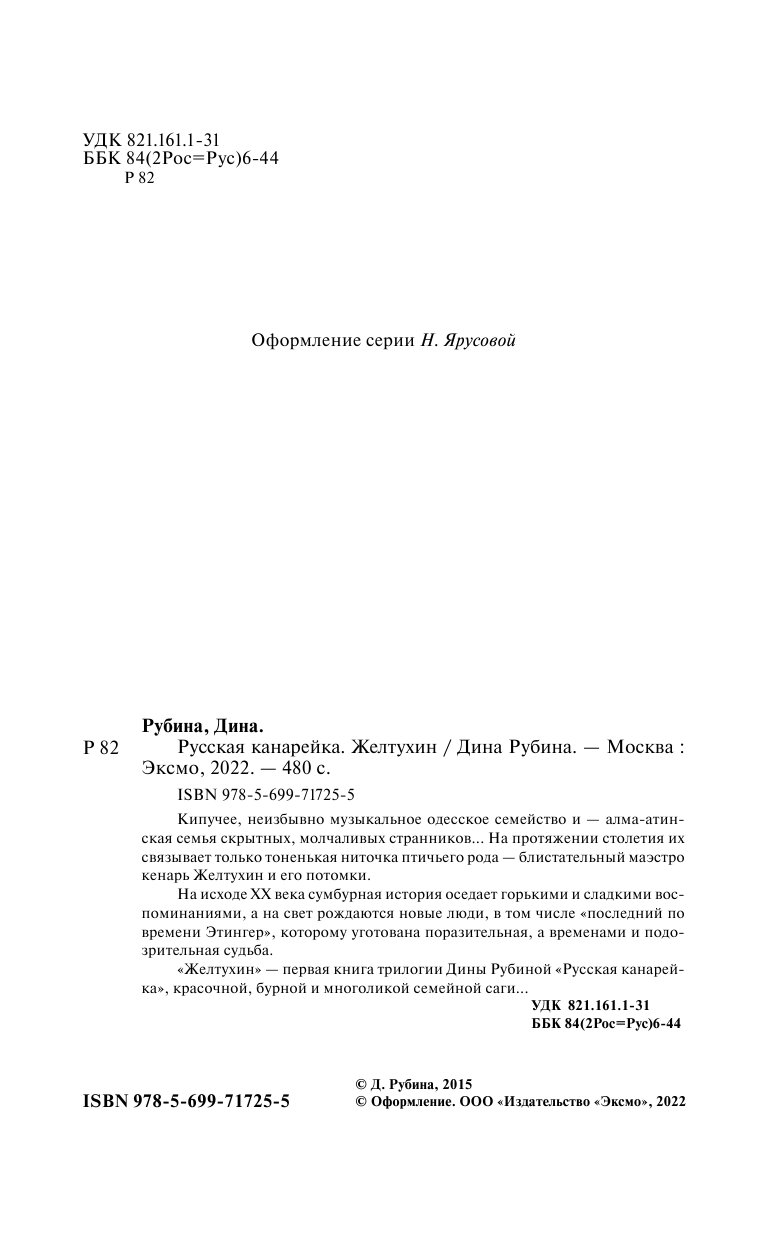 Русская канарейка. Желтухин (Дина Ильинична Рубина); Эксмо, 2022
