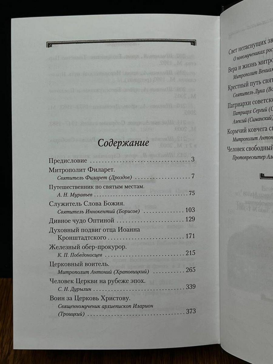 Книга представляет собой рассказы о людях Русской Церкви, о жизни и деятельности видных иерархов и простых монахов, священнослужителей и мирян. Среди ее героев святители Филарет Московский и Иннокентий Херсонский, духовный писатель А. Н. Муравьев и обер-прокурор К. П. Победоносцев, новомученики Церкви Русской и патриархи советской эпохи, православные епископы XX века митрополит Вениамин (Федченков) и митрополит Антоний (Блум) и другие.
