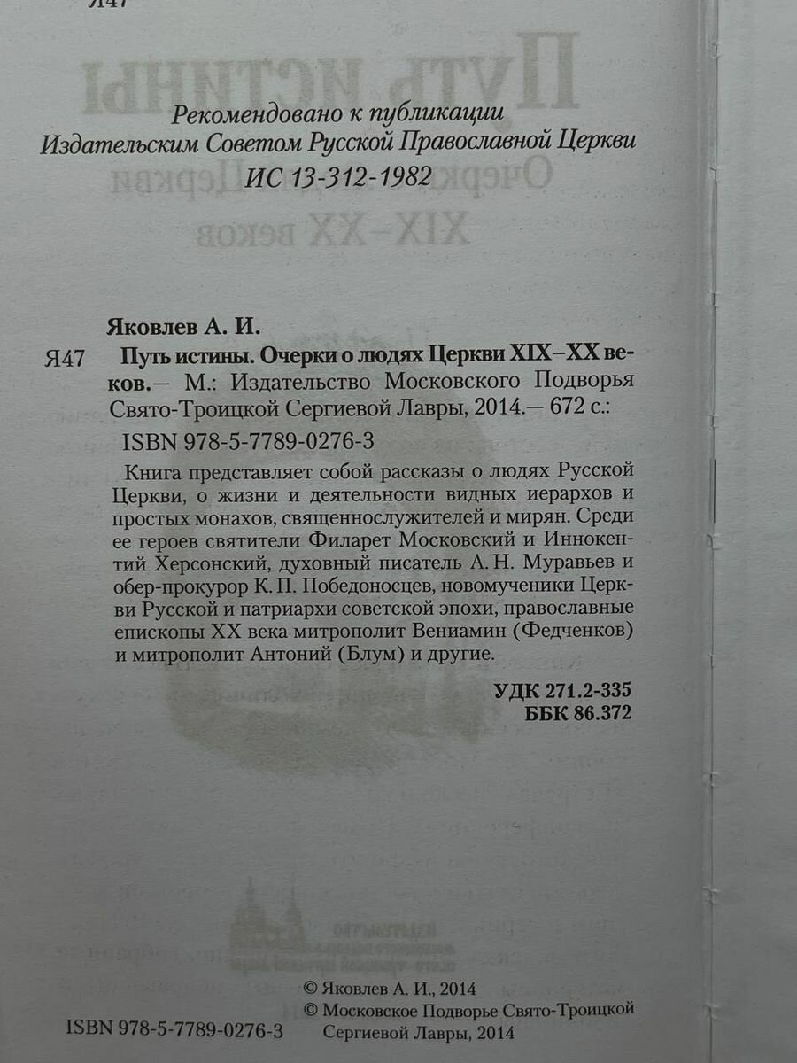 Путь истины. Очерки о людях Церкви XIX-XX веков (Александр Яковлев); Московское Троицкое Подворье Свято-Троицкой Сергиевой Лавры Русской Православной Церкви, 2014