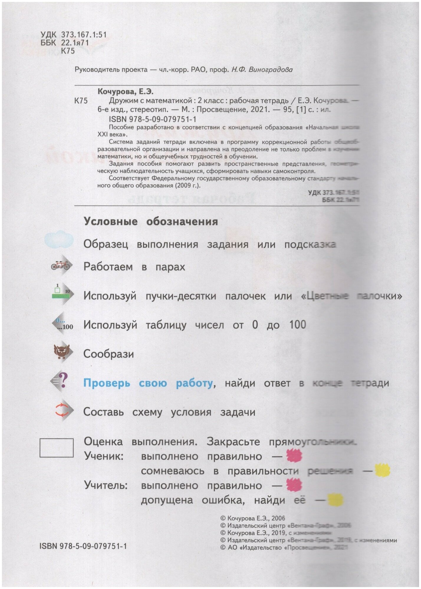 Дружим с математикой. 2 класс. Рабочая тетрадь для учащихся общеобразовательных организаций. (Кочурова Елена Эдуардовна); Вентана-Граф, 2018