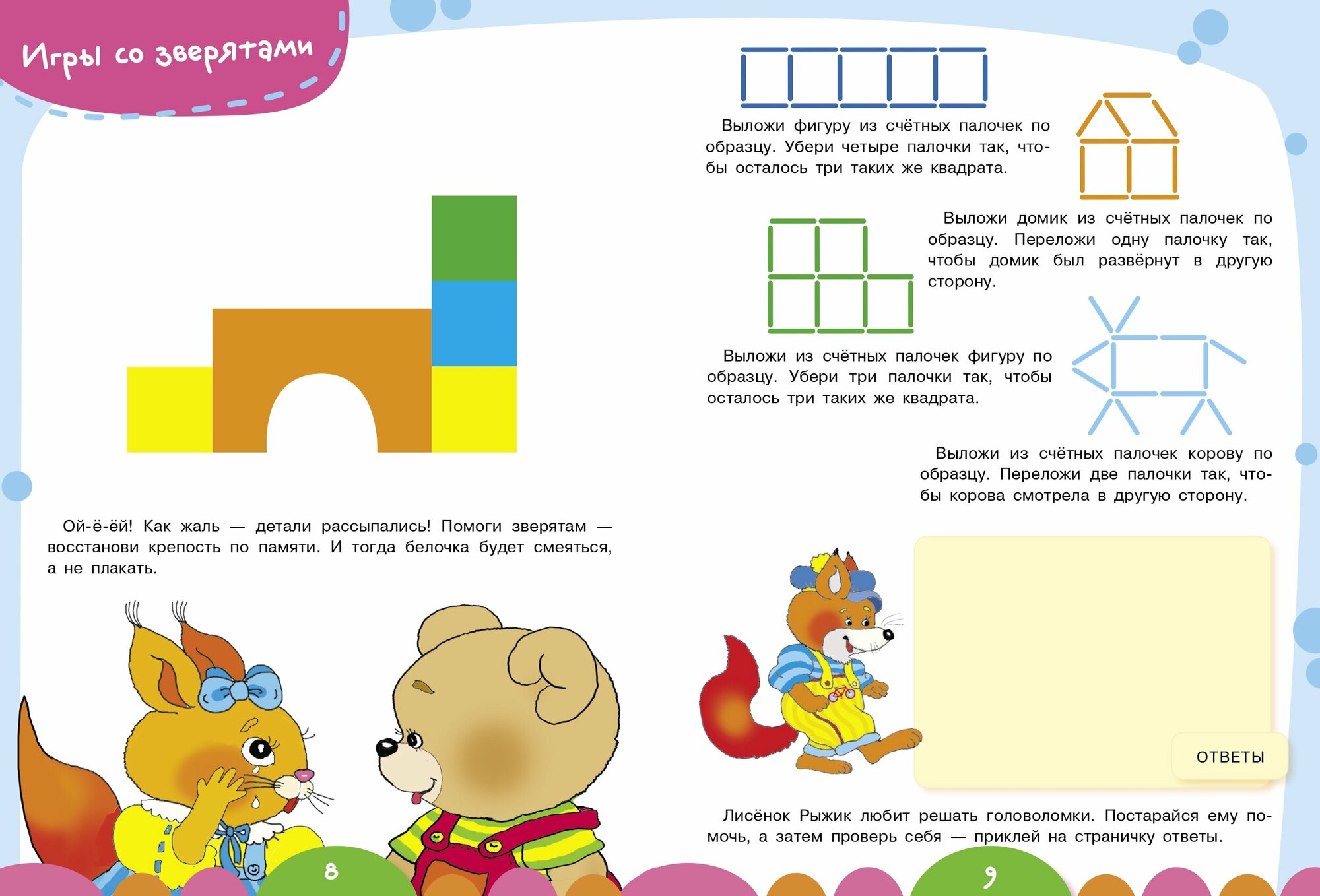 Вы держите в руках книгу, которая посвящена развитию мышления. С её помощью вы без труда организуете занятия со своим ребёнком. Многие задания в пособии направлены также на тренировку внимания и памяти. Их можно и нужно развивать. Ведь без устойчивого внимания и хорошей памяти не может быть и речи о развитии логического и творческого мышления ребёнка. Если при выполнении какого-либо задания ваш малыш испытывает трудности, сделайте задание вместе с ним. Выясните причину затруднений вашего маленького ученика, а затем предложите ему выполнить аналогичное задание самостоятельно. Яркие иллюстрации и наклейки, представленные в книге, помогут вам сделать процесс обучения более интересным.