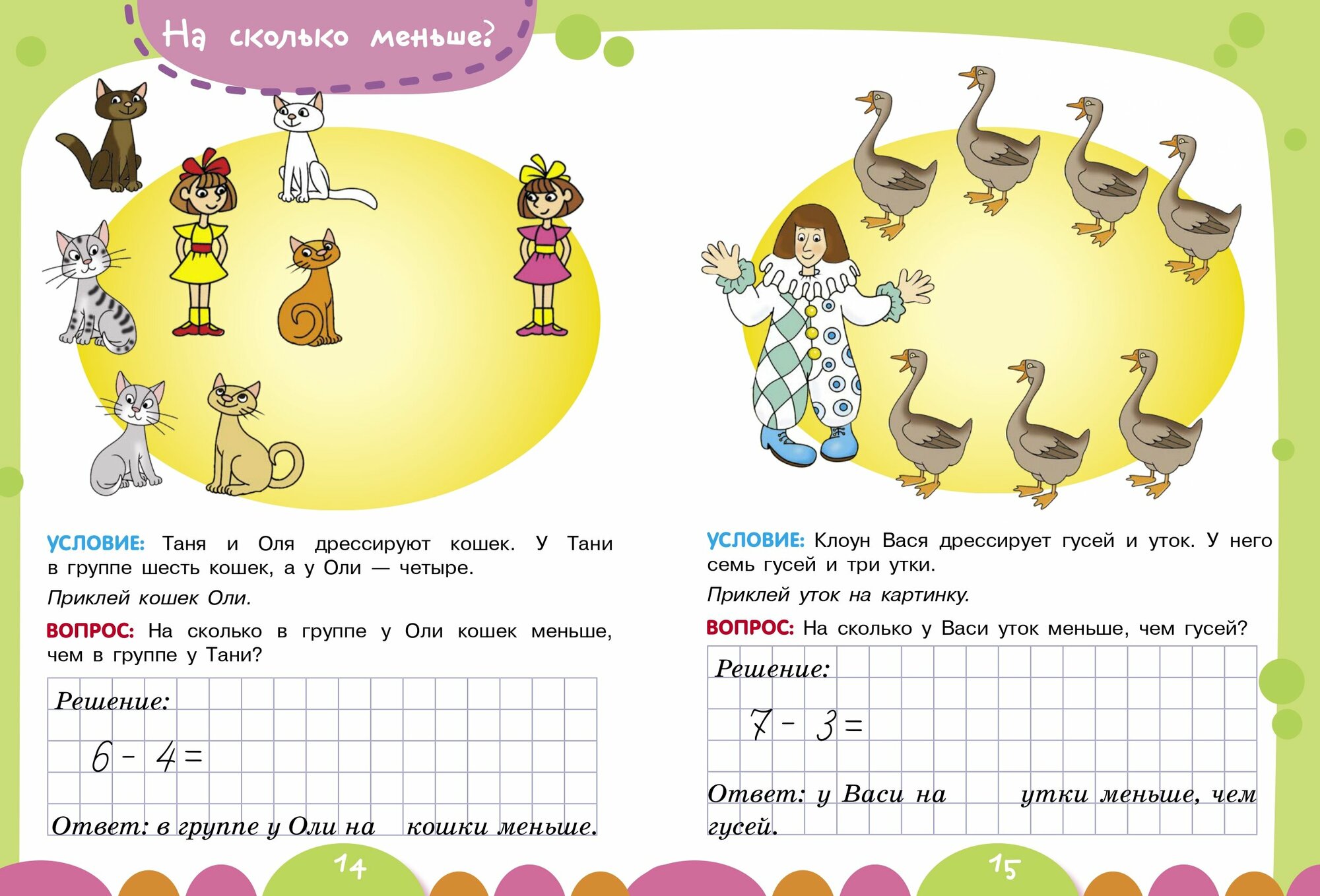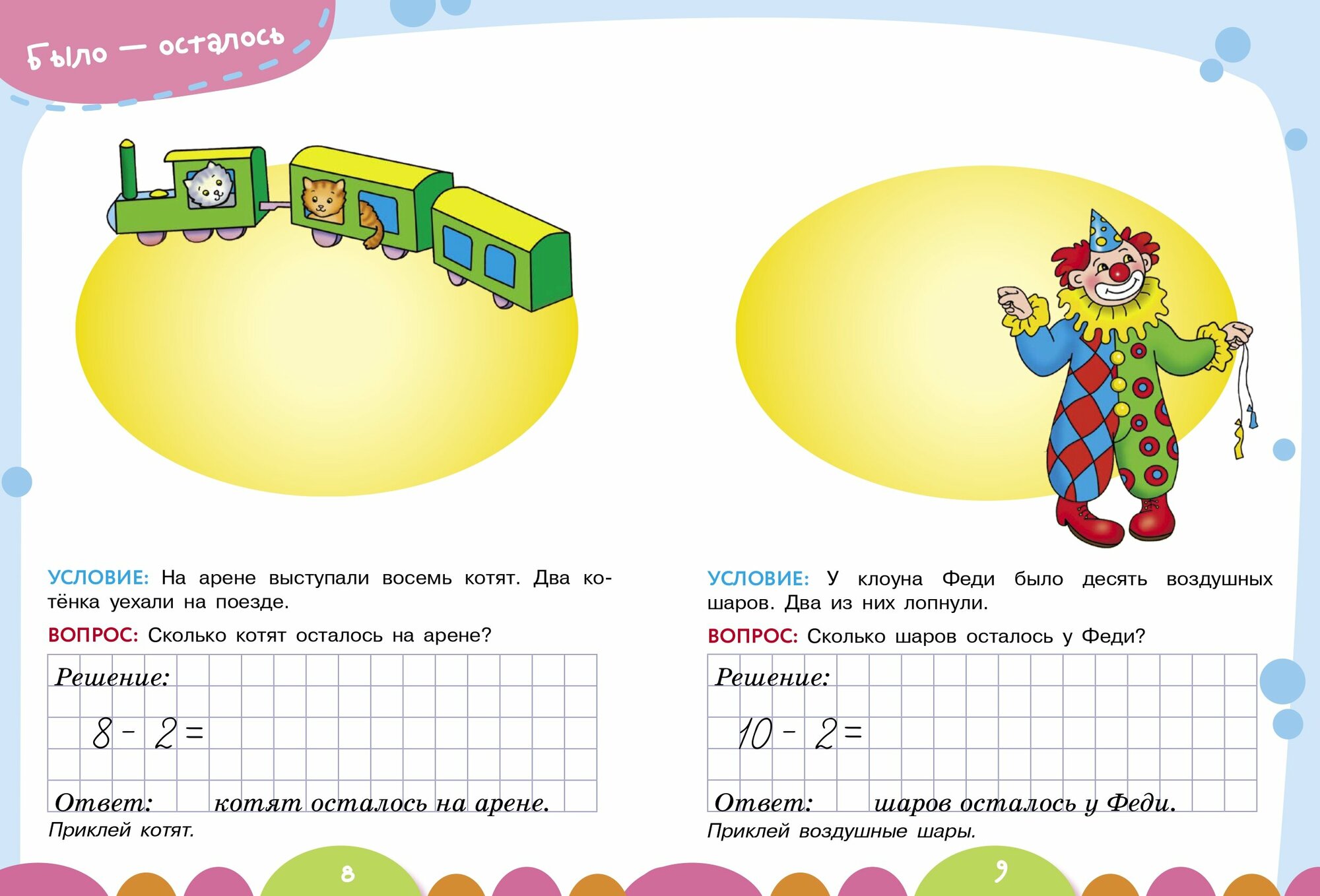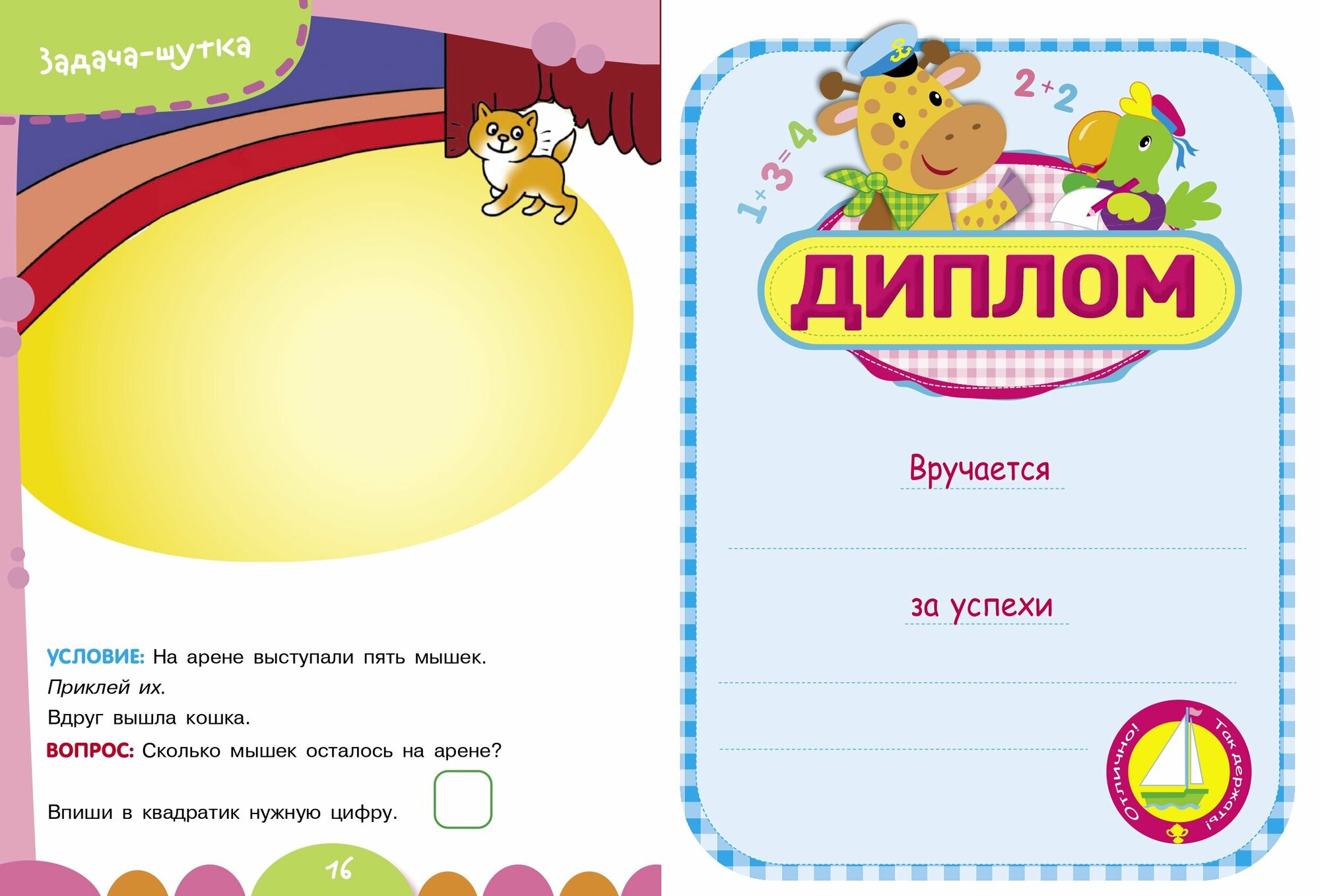 Заказали данную книгу, как закрепление знаний на сложение и вычитание. В ней представлено 15 задач : 7 на сложение и 8 на вычитание. Дано условие и задан вопрос,на который ребенок должен дать ответ решив пример составленный и записанный автором по условию. Так же ребенок должен дополнить наклейками рисунки,сделанные к каждой задаче индивидуально. По завершению ребенку вручается именной диплом за успехи. Как дополнительное пособие для закрепления сойдет.