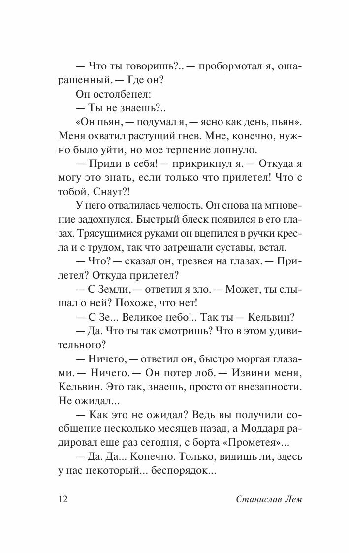 "Солярис", на мой взгляд, одна из немногих книг, которые можно перечитывать снова и снова, и, при это с каждым прочтением открывать для себя что-то новое. Прежде чем прочесть произведение, я просмотрела обе экранизации, впечатление от которых было, мягко говоря, не самое лучшее. Но когда я открыла первые страницы книги, мой разум унесся далеко в космос, на ту самую станцию. На протяжении всего романа я ощущала себя частью его. Мне казалось, что я действительно нахожусь вместе со всеми героями на космической станции и переживаю все происходящие там события. Бесподобное произведение! И бесспорно, Станислав Лем - гениальнейший творец!