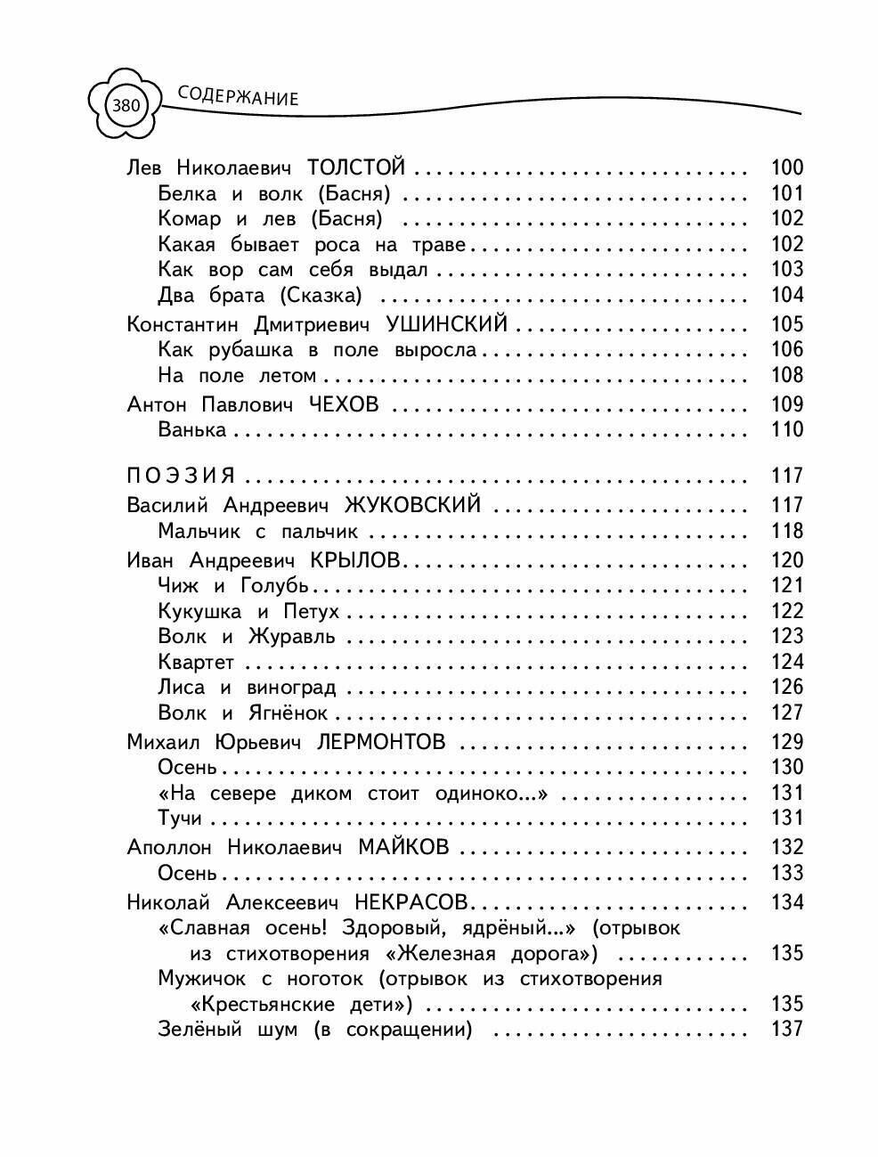 Хрестоматия в полутвердом переплете, шрифт для ребенка удобный крупный. Содержание можно посмотреть в соответствующей вкладке. Помимо художественных произведений даны чуть менее крупных шрифтом минибиографии писателей и поэтов на (что немаловажно) доступном и понятном для ребенка языке