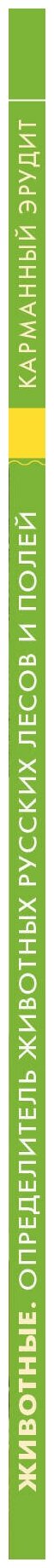 Карманный определитель - незаменимый помощник каждого любителя родной природы. Его удобно брать с собой в лес и на прогулку! Этот справочник познакомит читателя с 60 видами животных, обитающих в средней полосе России. Оригинальна конструкция обложки: клапан-раскладушка на 1-й сторонке, на котором представлены цветные фотографии всех упоминающихся в книге видов.