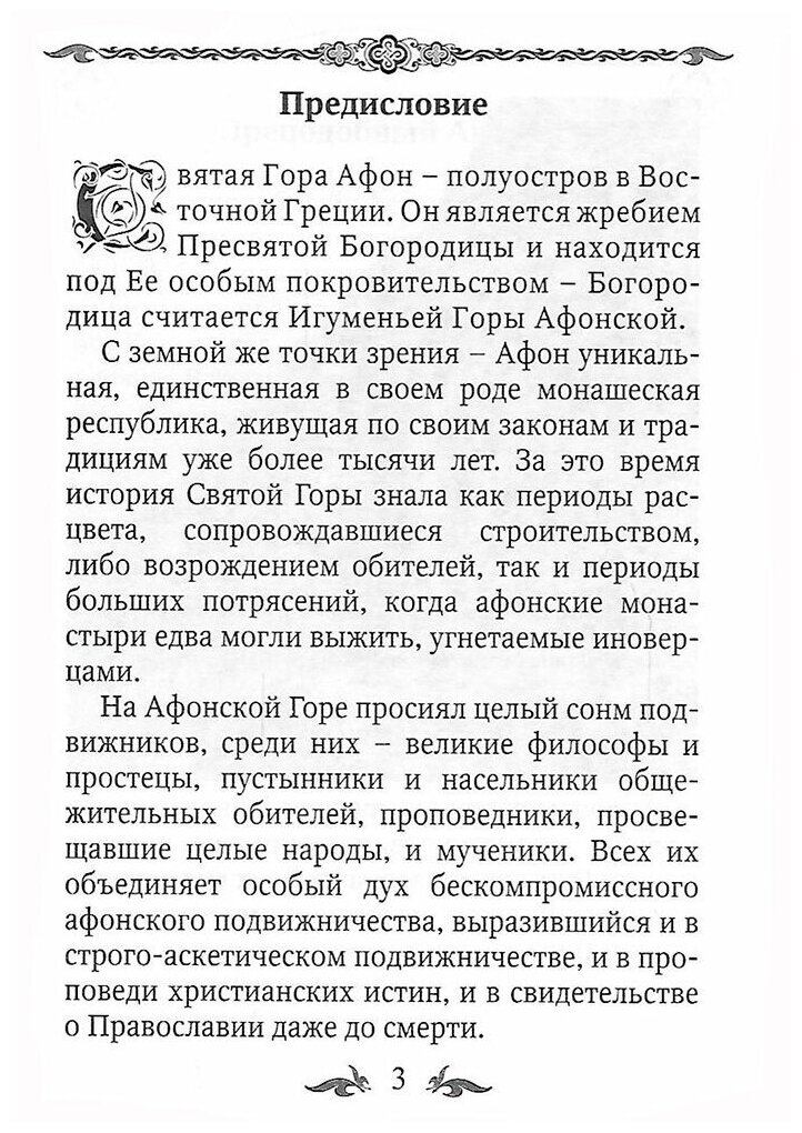 В данном сборнике представлены жития некоторых афонских святых, их избранные поучения, а также чудесные и знаменательные случаи, связанные с ними. Приводятся краткая история Святой Горы, рассказ об афонских монастырях, слова об Афоне лиц, которые сподобились побывать на нем.