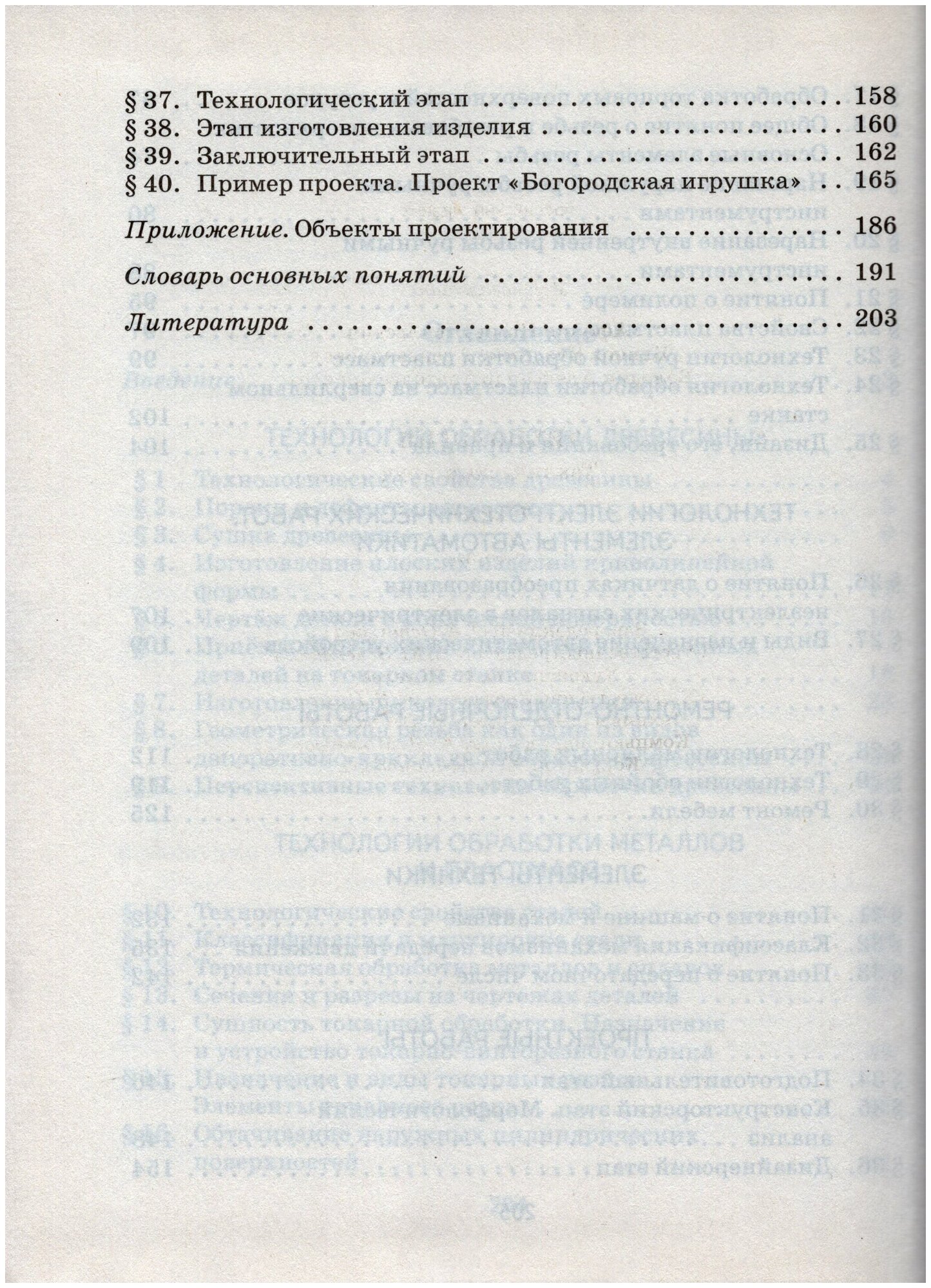 Учебник содержит сведения о технологических свойствах древесины и металлов. В нем приведены технологии обработки конструкционных материалов (обтачивание конических и фасонных поверхностей деталей из древесины на токарном станке, изготовление шипового соединения, выполнение геометрической резьбы; обтачивание наружных цилиндрических поверхностей металлических деталей, обработка их торцов и уступов на токарно-винторезном станке, нарезание наружной и внутренней резьбы ручными инструментами; обработка пластмасс на сверлильном станке). Дана информация о механизмах передачи движения, кинематической цепи, датчиках преобразования неэлектрических сигналов в электрические, простейших устройствах автоматики.
