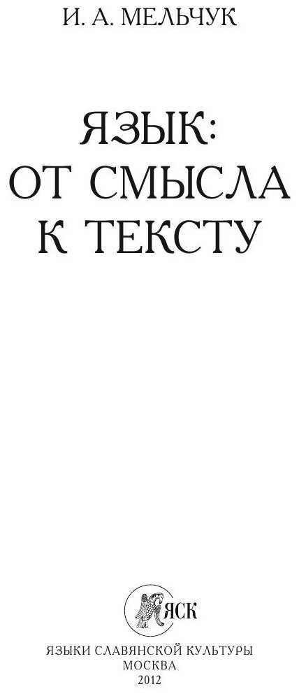 Книга: Язык: от смысла к тексту (И. А. Мельчук); Языки Славянской Культуры, 2012