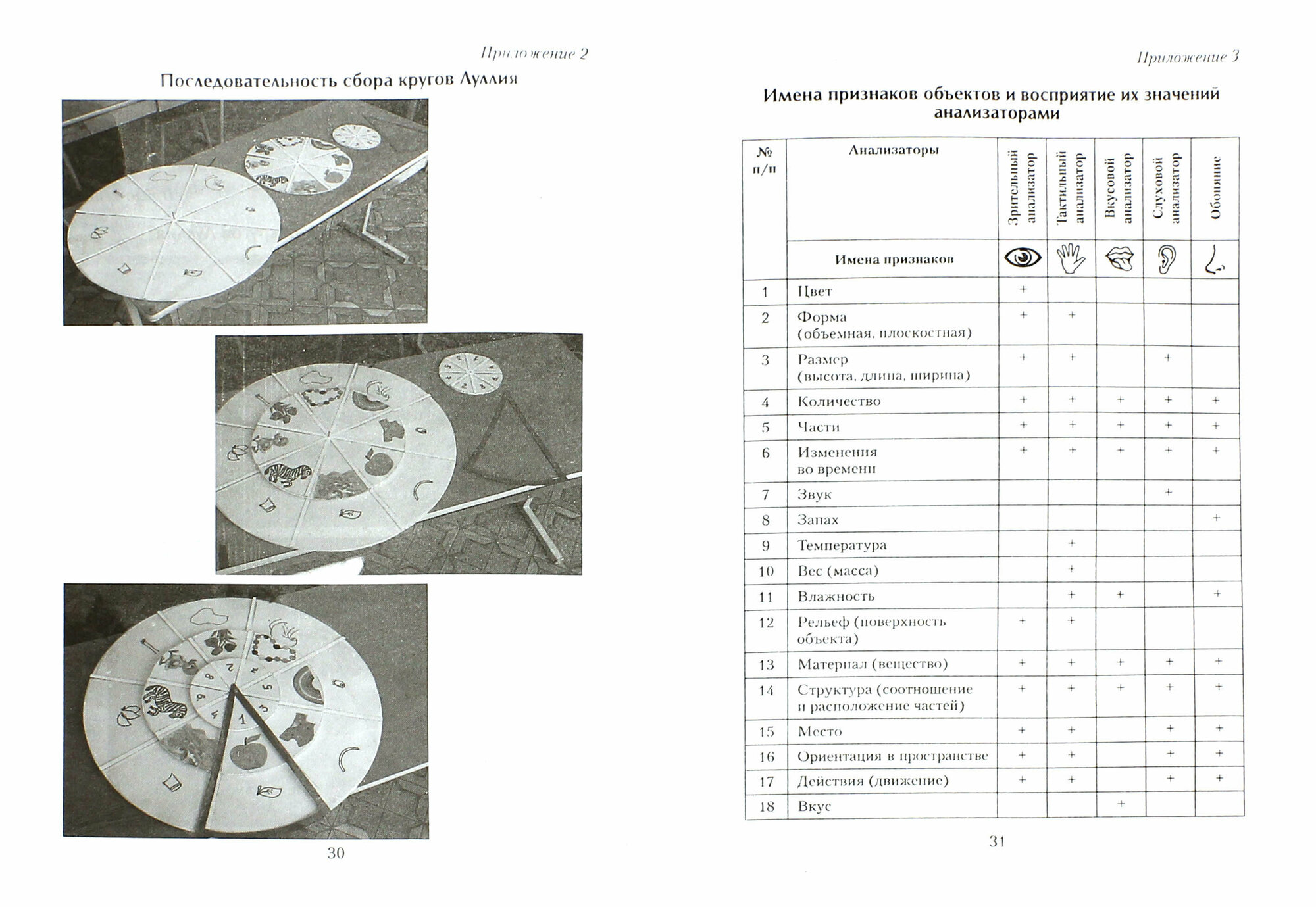 Тоненькая книжечка формата А5. Описывается метод кругов Луллия. На стержень нанизывают несколько кругов разного диаметра с одинаковым количеством секторов, сверху устанавливают стрелку.На секторах картинки или слова. Двигая круги можно получить разные комбинации картинок. Что позволяет формировать у детей понятия объект-признак.