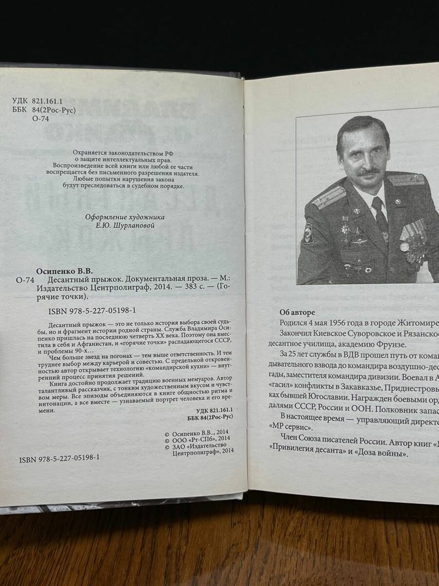 Десантный прыжок - это не только история выбора своей судьбы, но и фрагмент истории родной страны. Служба Владимира Осипенко пришлась на последнюю четверть XX века. Поэтому она вместила в себя и Афганистан, и "горячие точки" распадающегося СССР, и проблемы 90-х…