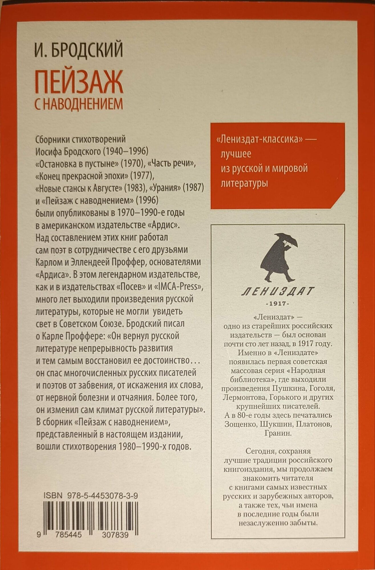 На сегодняшний день товар «Книга: Пейзаж с наводнением. Стихотворения (Бродский Иосиф Александрович); Лениздат, 2017» можно купить с кешбеком в 4 магазинах: book24, Буквоед, Читай-город, Яндекс.Маркет