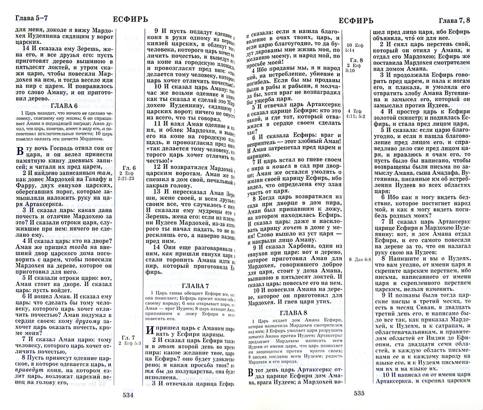 Священное Писание в Синодальном переводе. Сохранено постраничное расположение текста издания 1947 г. (набор в 2 колонки, указатель параллельных мест посередине страницы).