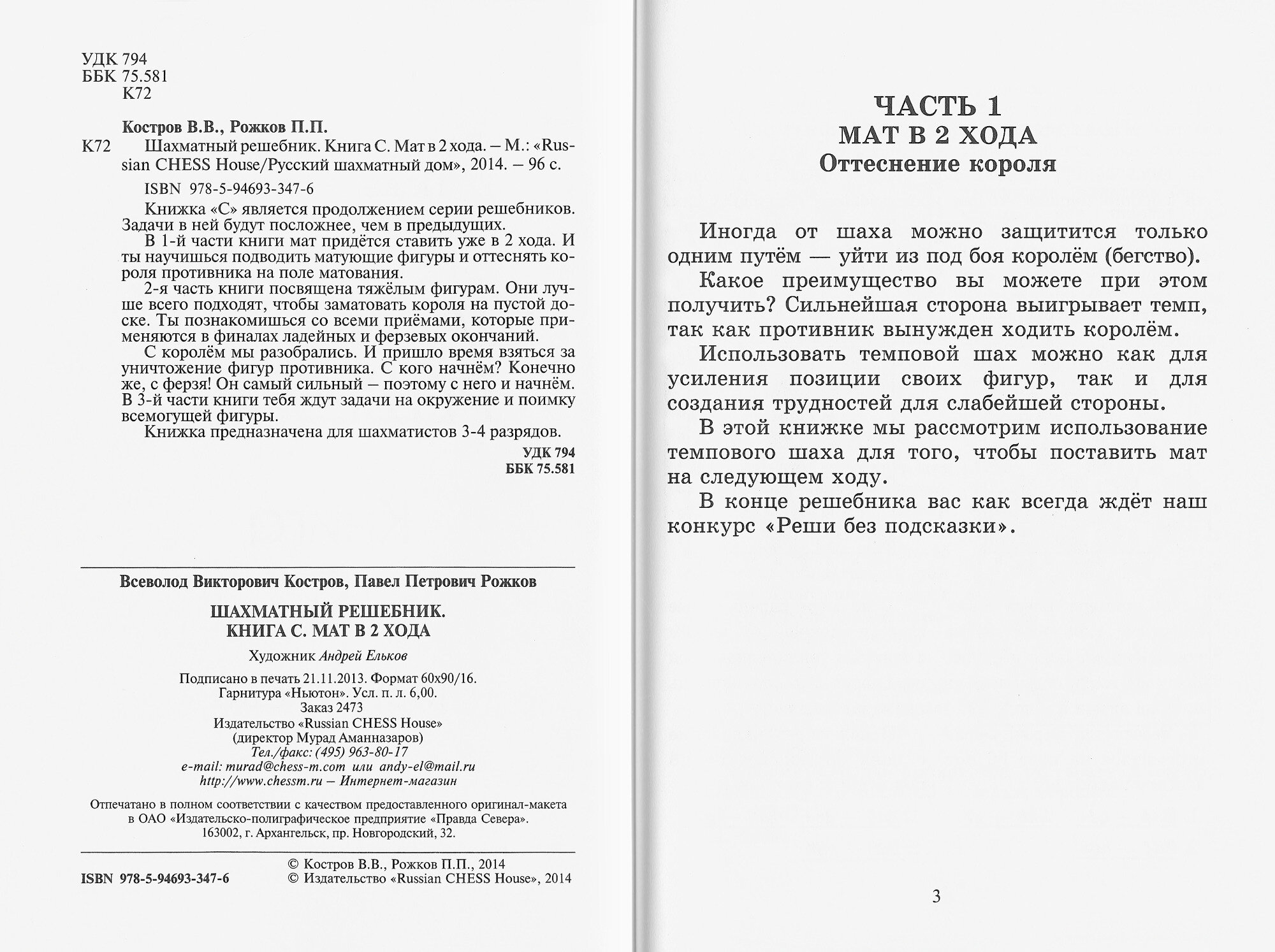 Шахматный решебник. Книга С. Мат в 2 хода (Всеволод Викторович Костров); Русский шахматный дом, 2016