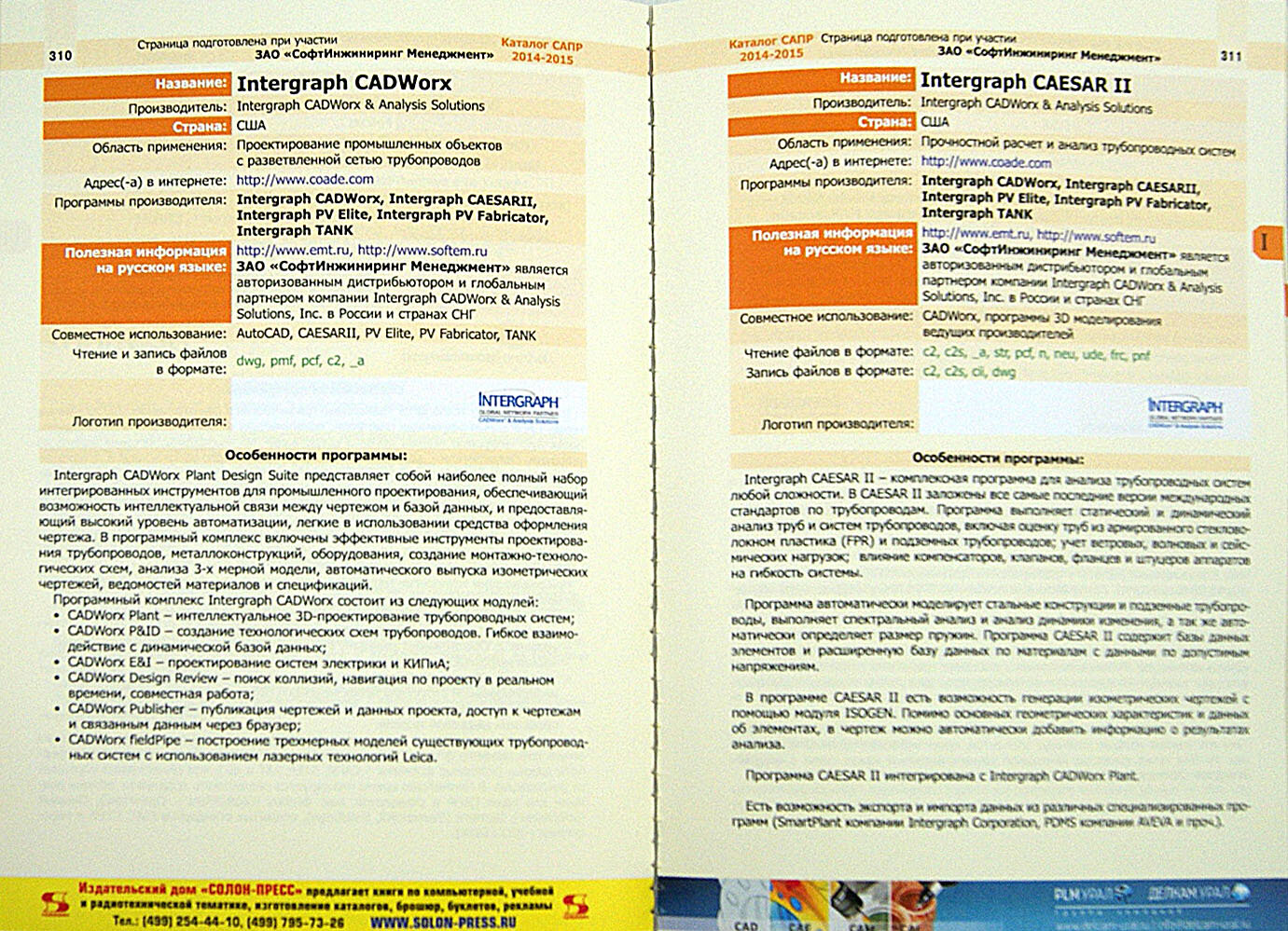 В Каталоге представлен уникальный справочный материал - перечень практически всех программных продуктов по САПР, имеющих хождение в России, с кратким описанием основных особенностей и ссылками на первоисточники.
